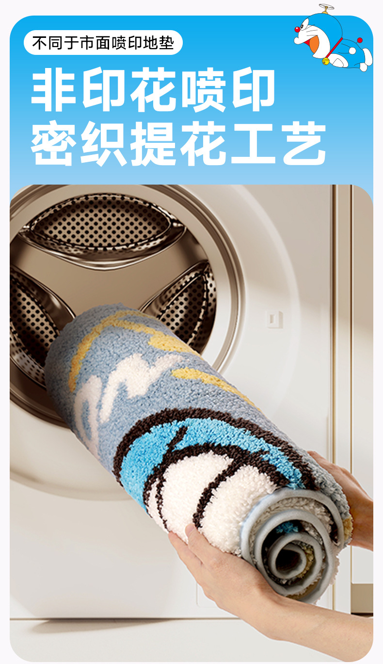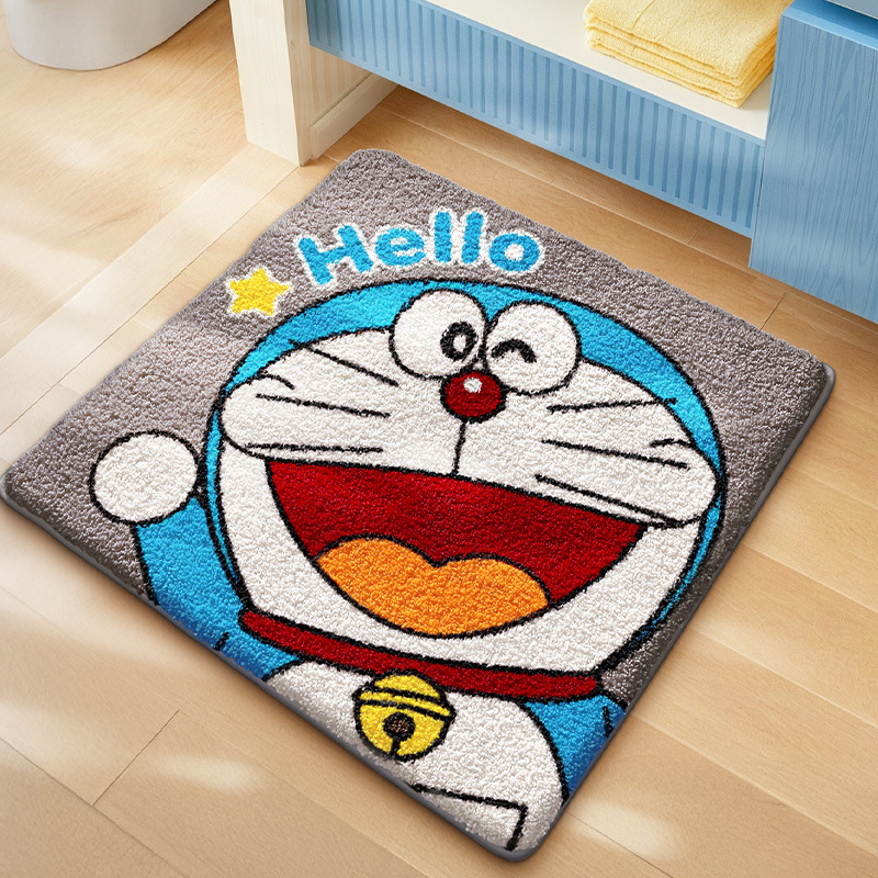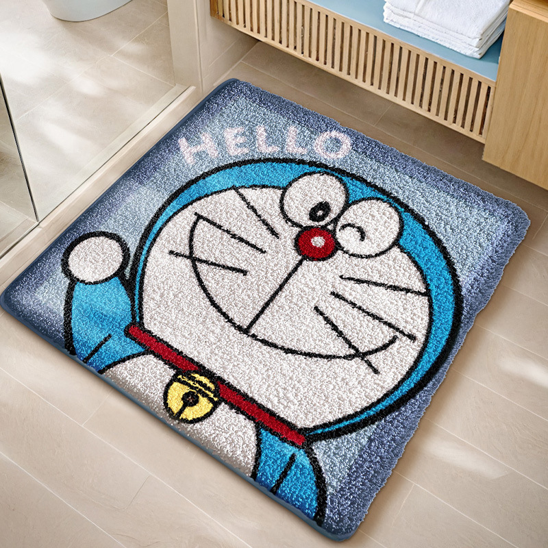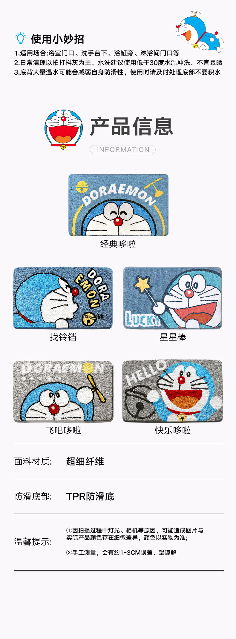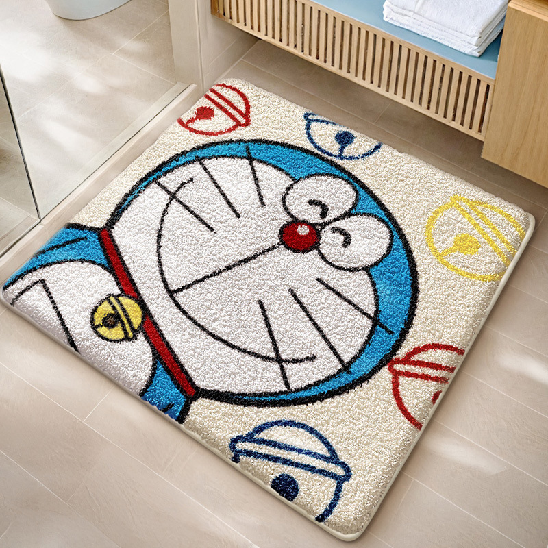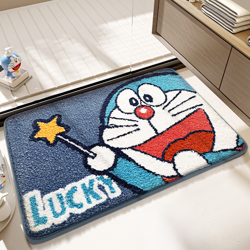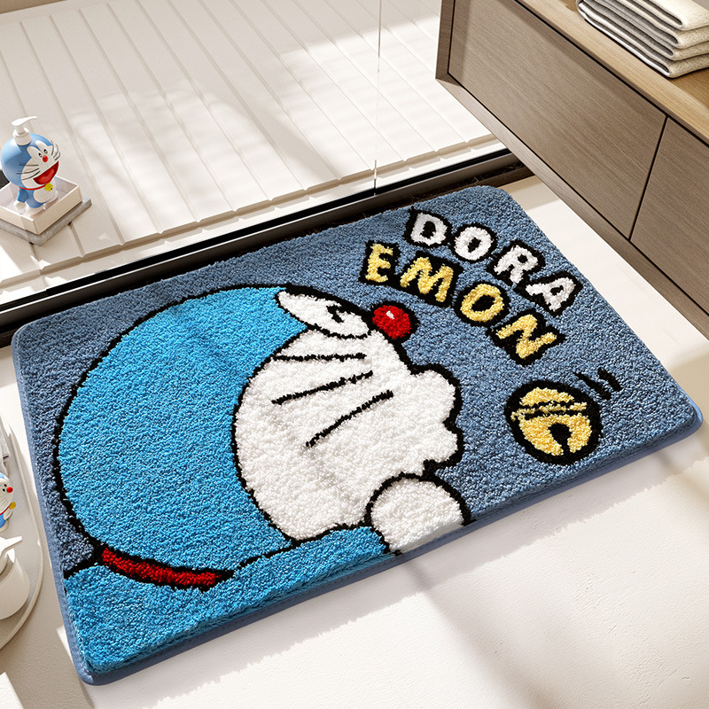 도라에몽 플록 욕실 흡수 매트, 고밀도 자카드 미끄럼 방지 매트, 욕실 입구 발매트, 플록 매트