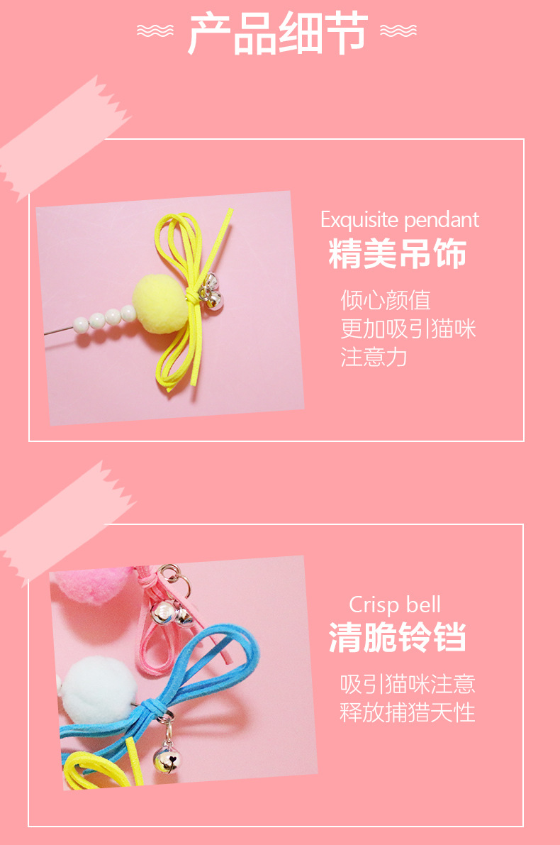 고양이 장난감, 고양이 자극봉, 고양이 장난감, 자가놀이, 지루함 해소, 종, 리본, 털방울, 요술봉, 도매, 고양이용