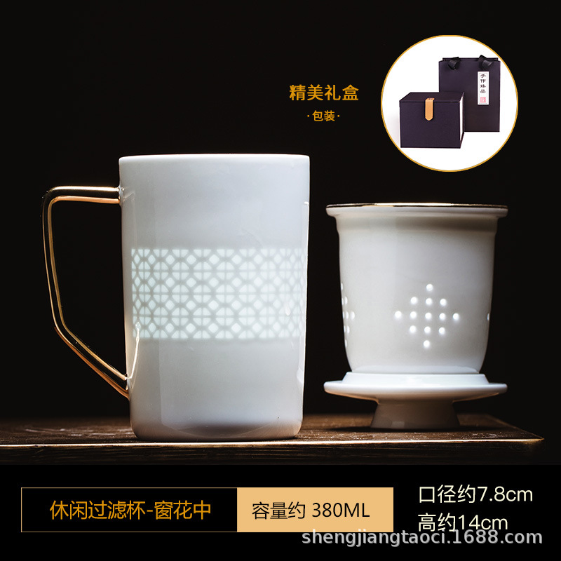 Jingdezhen 흰색 도자기 차 컵 세라믹 필터 컵 차 분리 뚜껑이있는 컵 가정용 사무실 컵