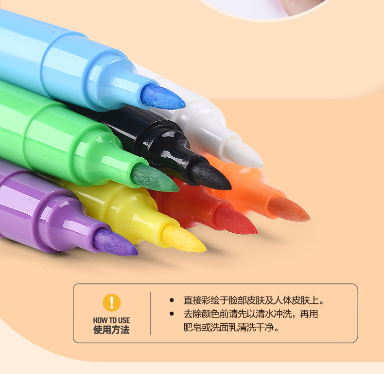 진완니안 세척 가능한 친환경 바디페인팅 펜 부드러운 팁 얼굴 그래피티 페인팅 게임 바디페인팅 물감