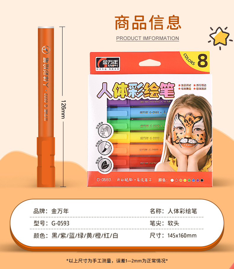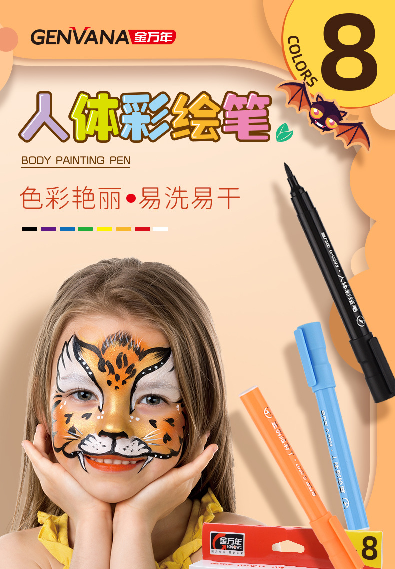 진완니안 세척 가능한 친환경 바디페인팅 펜 부드러운 팁 얼굴 그래피티 페인팅 게임 바디페인팅 물감스토어 가기