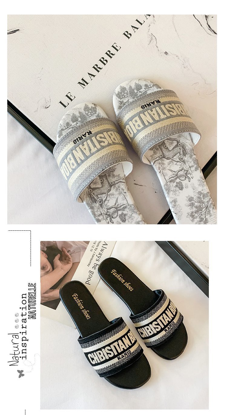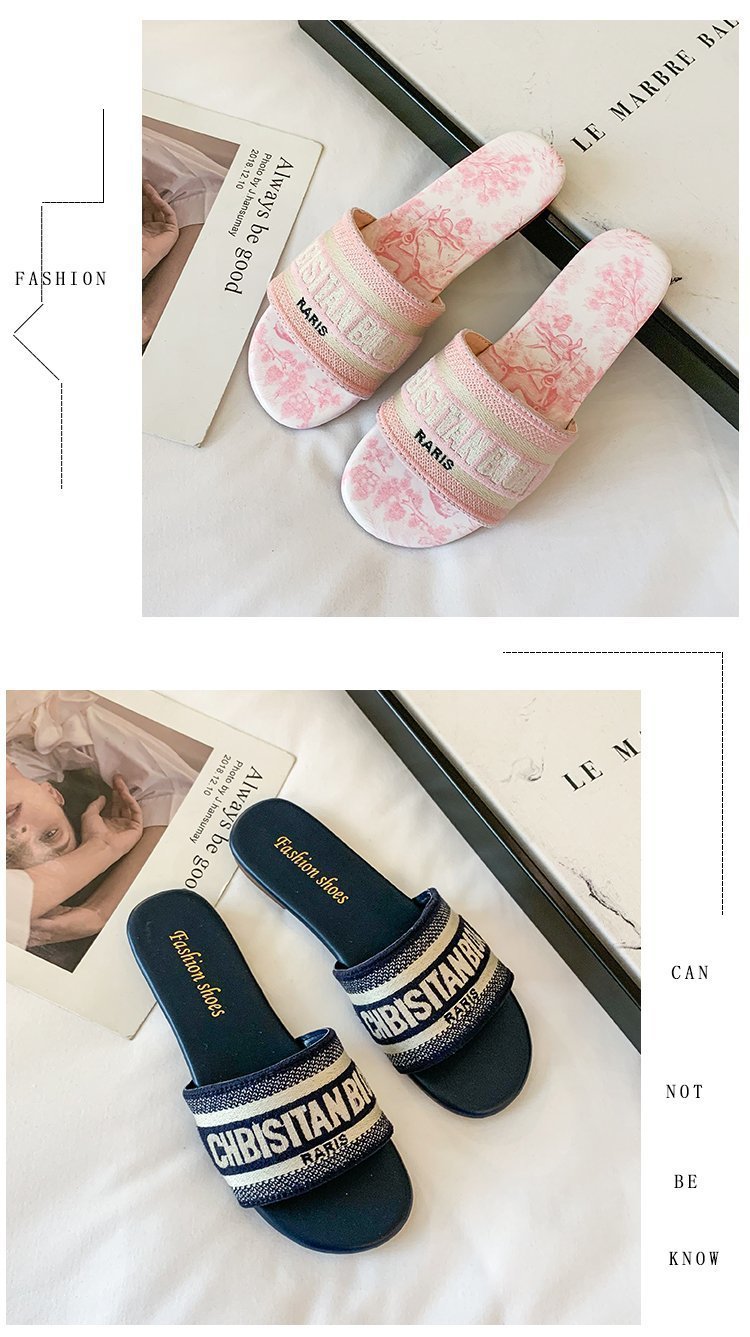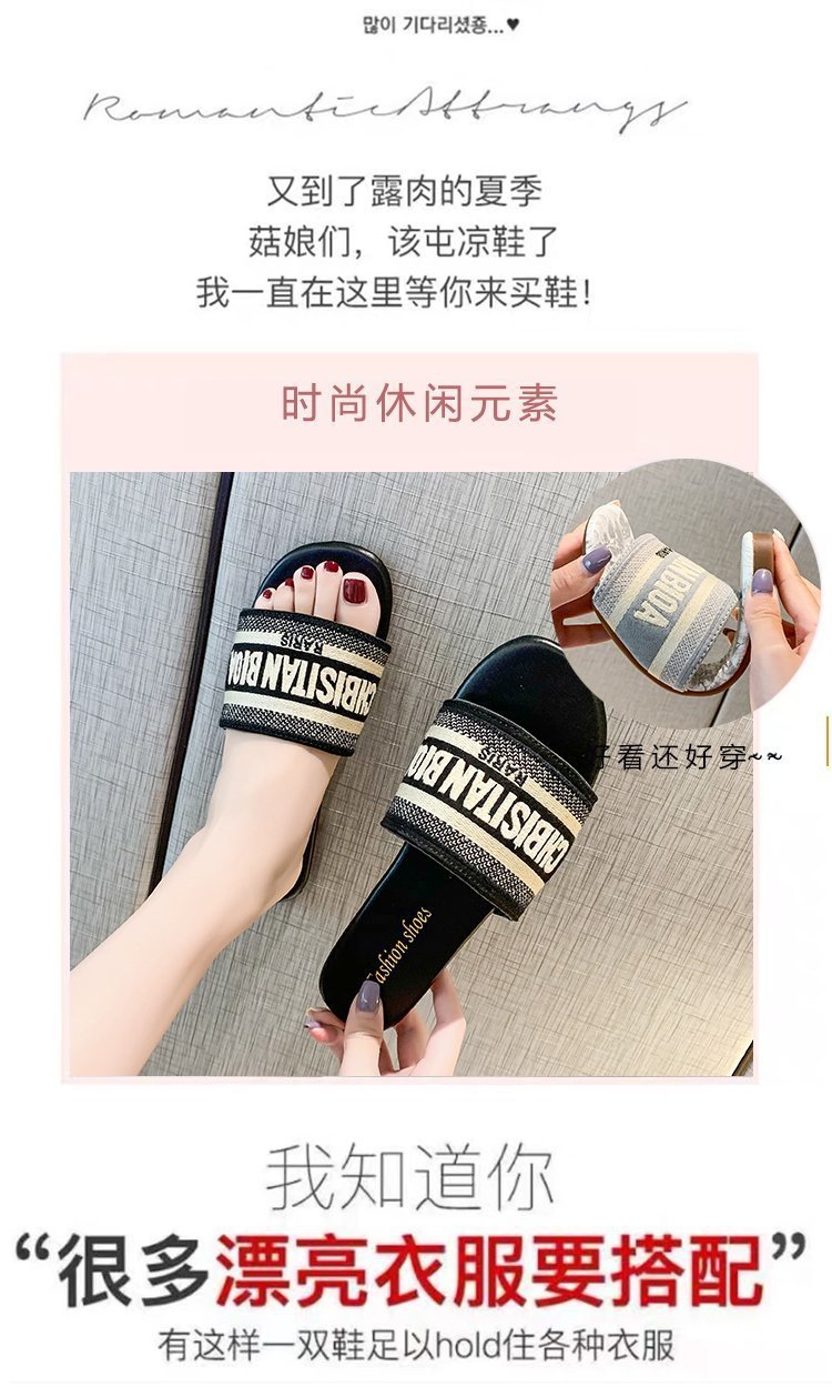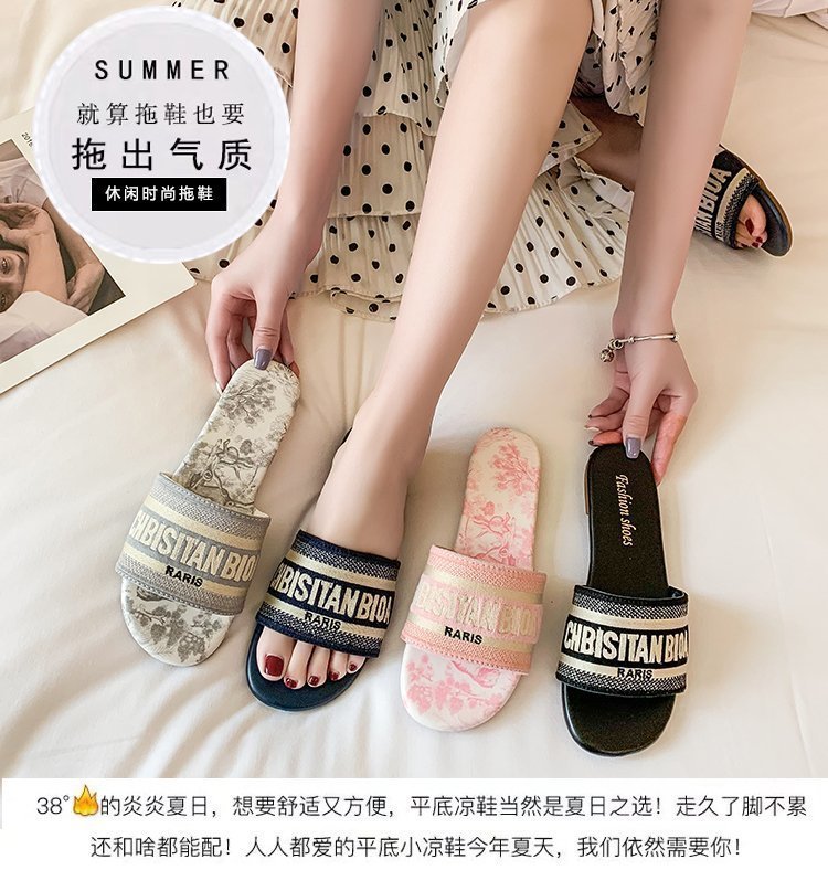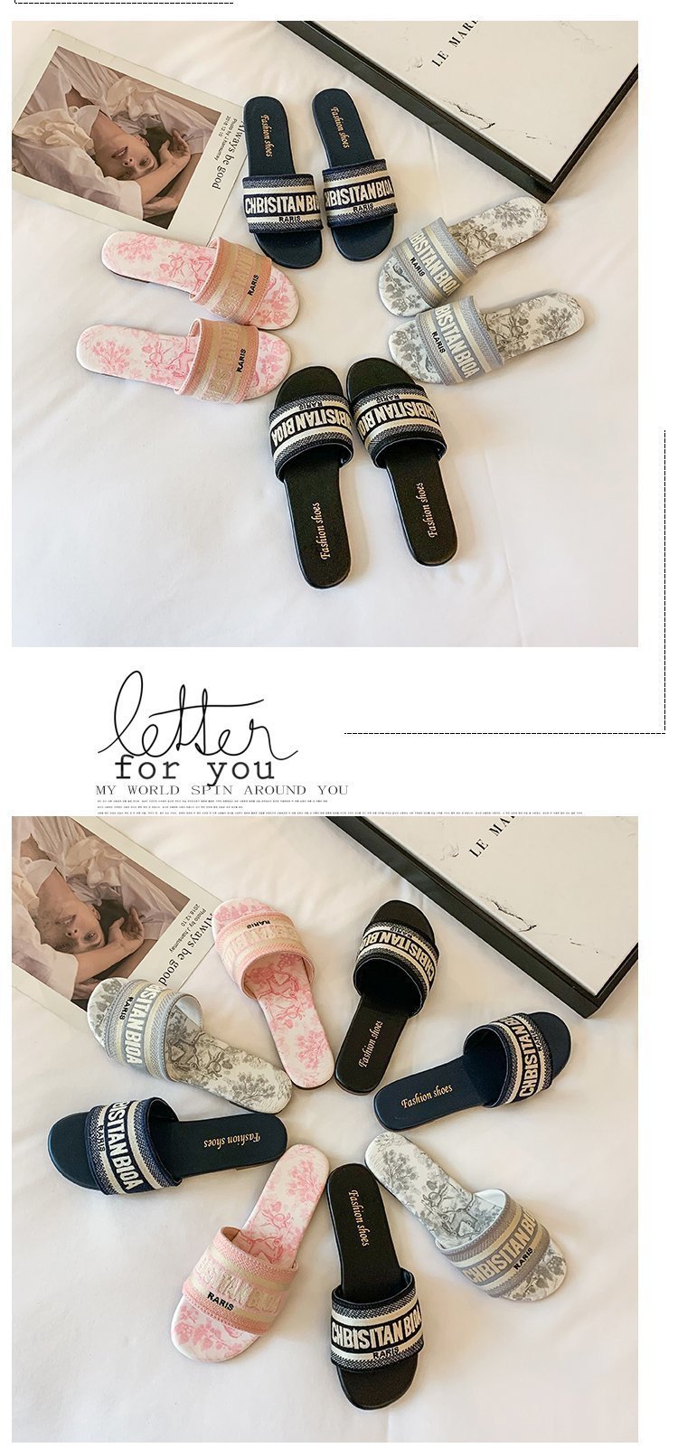 여성용 해외 여행용 슬리퍼 2025 여름 신상 패션 레터링 플랫 슬리퍼 요정 스타일 샌들스토어 가기