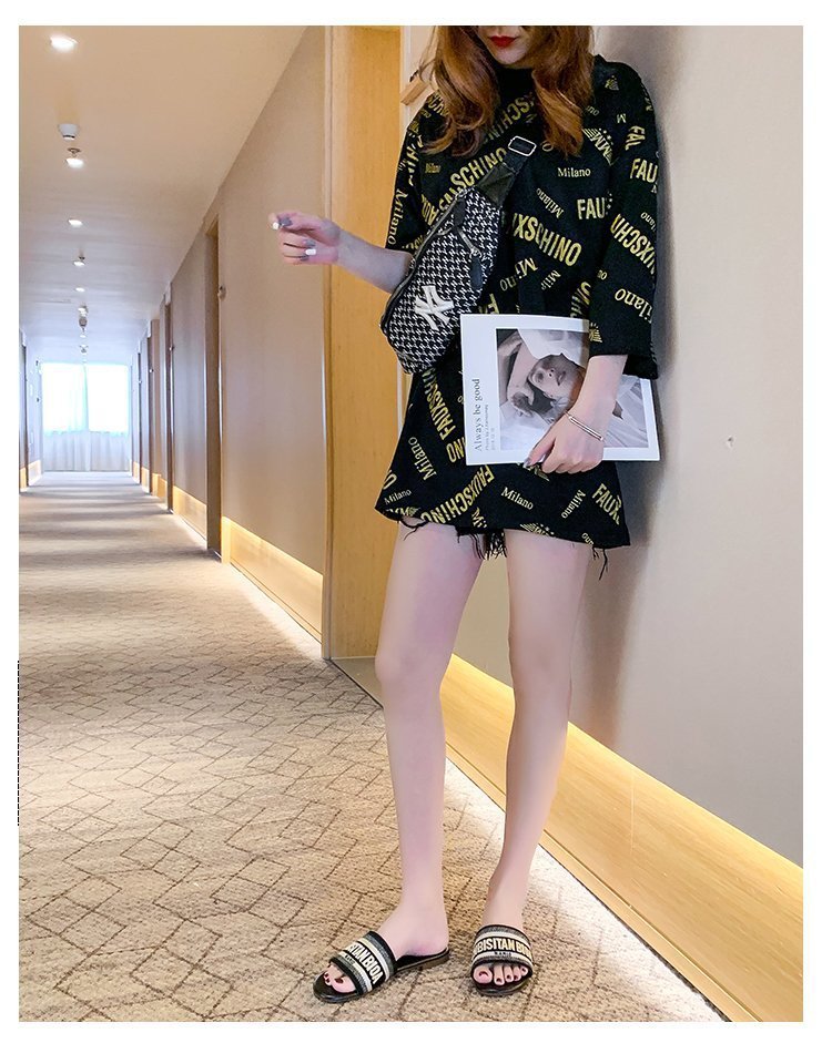 여성용 해외 여행용 슬리퍼 2025 여름 신상 패션 레터링 플랫 슬리퍼 요정 스타일 샌들