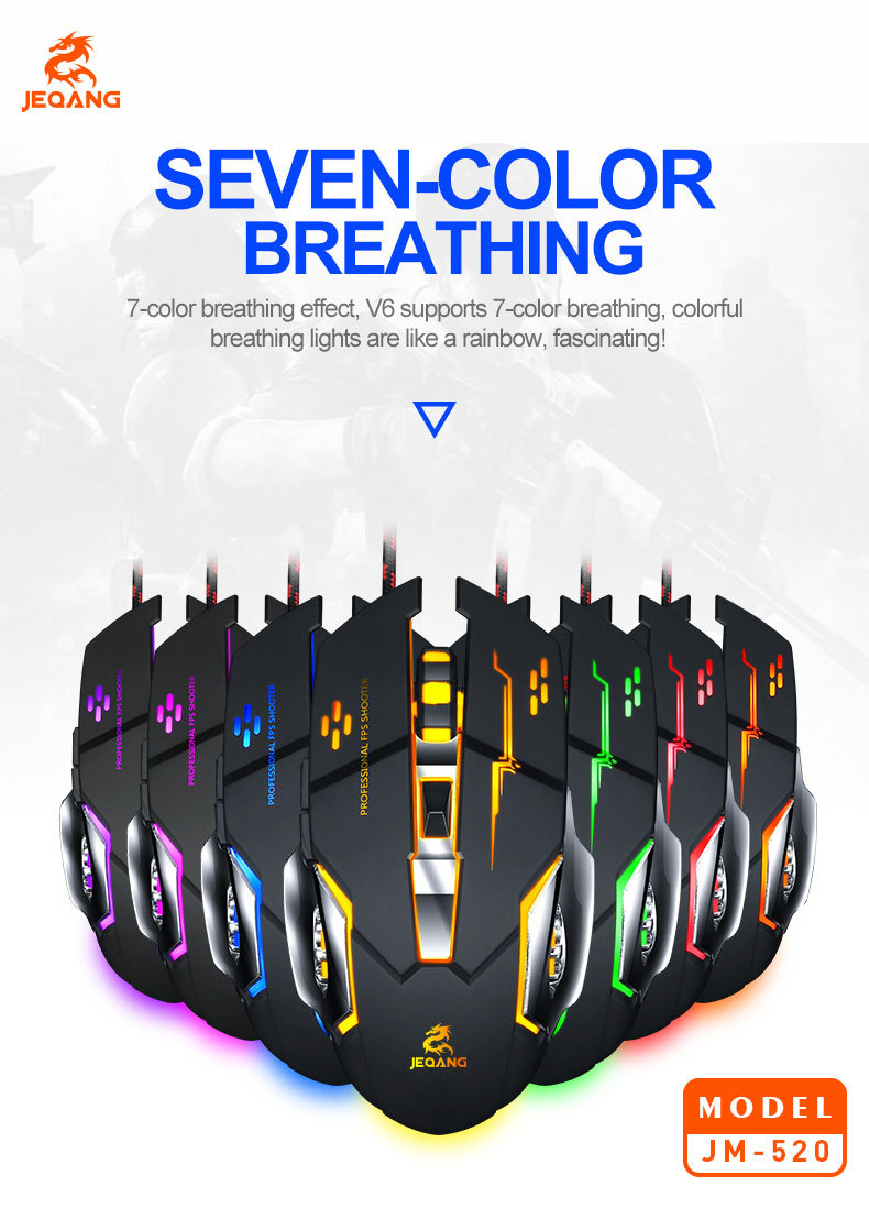 JEQANG-520 e스포츠 게임용 기계식 마우스 고정밀 DPI 조정 인체공학적 디자인 편안한 느낌