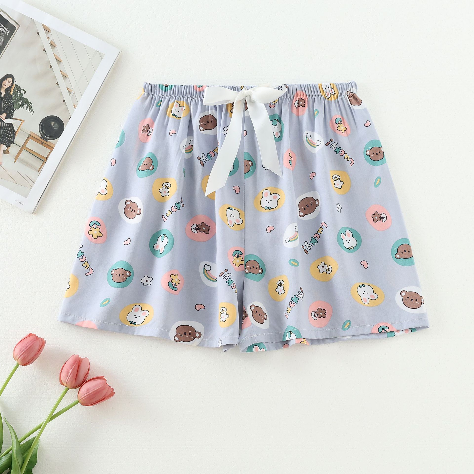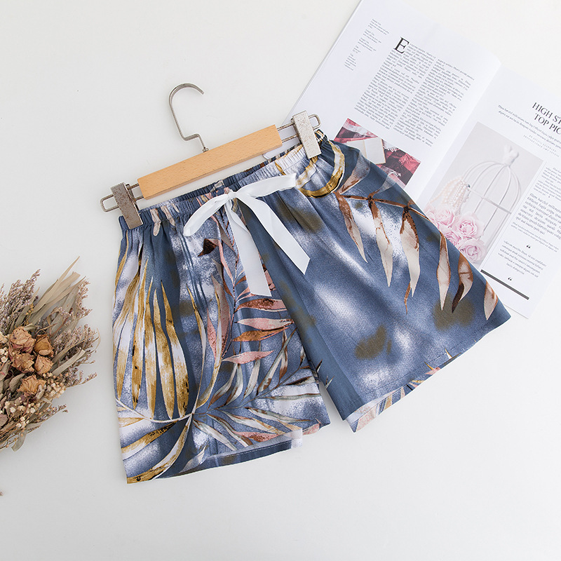 공장 직접 공급 면 실크 반바지 여성 여름 얇은 일본 꽃 드레이프 탄성 허리 잠옷 인공 면 싱글 바지스토어 가기