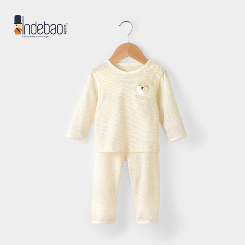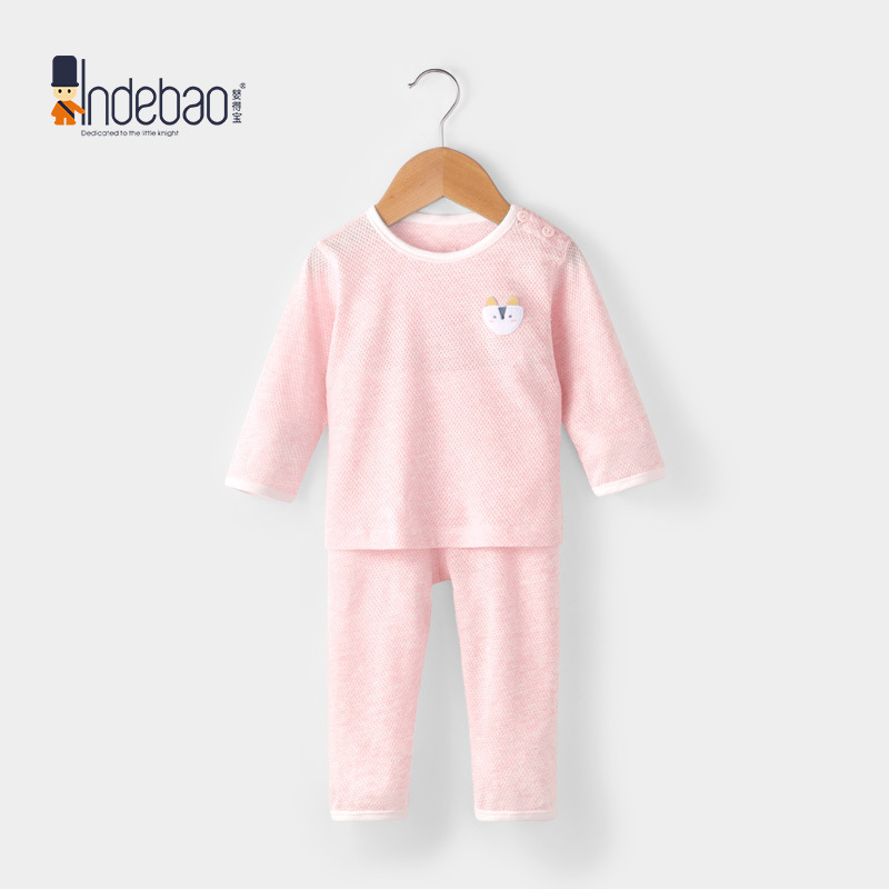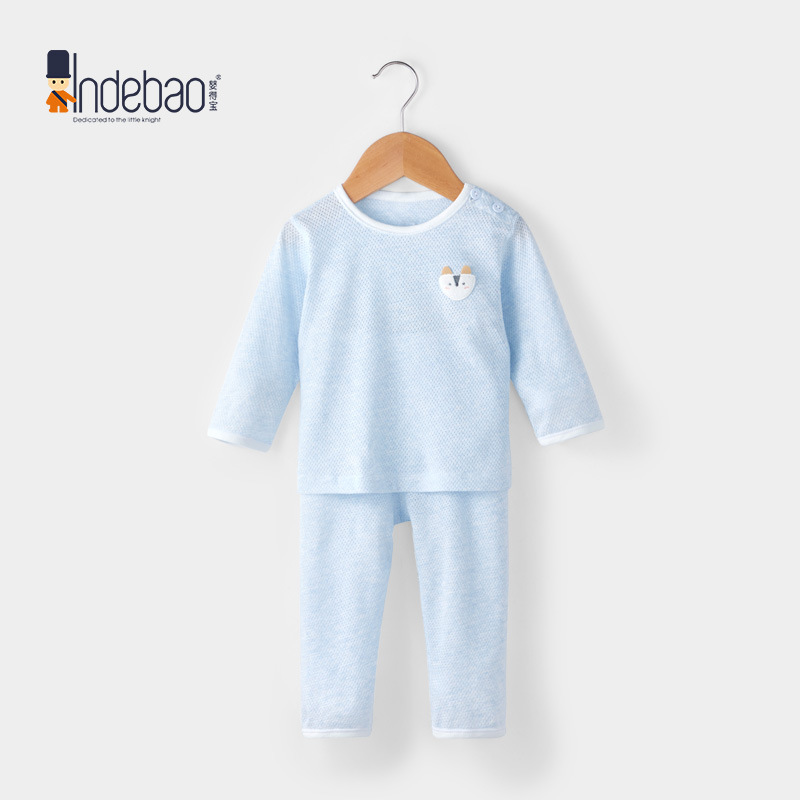유아복, 분리형 여름 아기 잠옷, 순면 메쉬 긴팔 아동 속옷 세트, 만화 요소스토어 가기