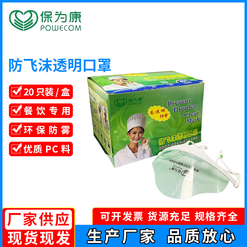 Baoweikang 투명 마스크 침 방울 방지 귀걸이 환경 보호 레스토랑 및 주방용 김서림 방지 및 방진 플라스틱 마스크