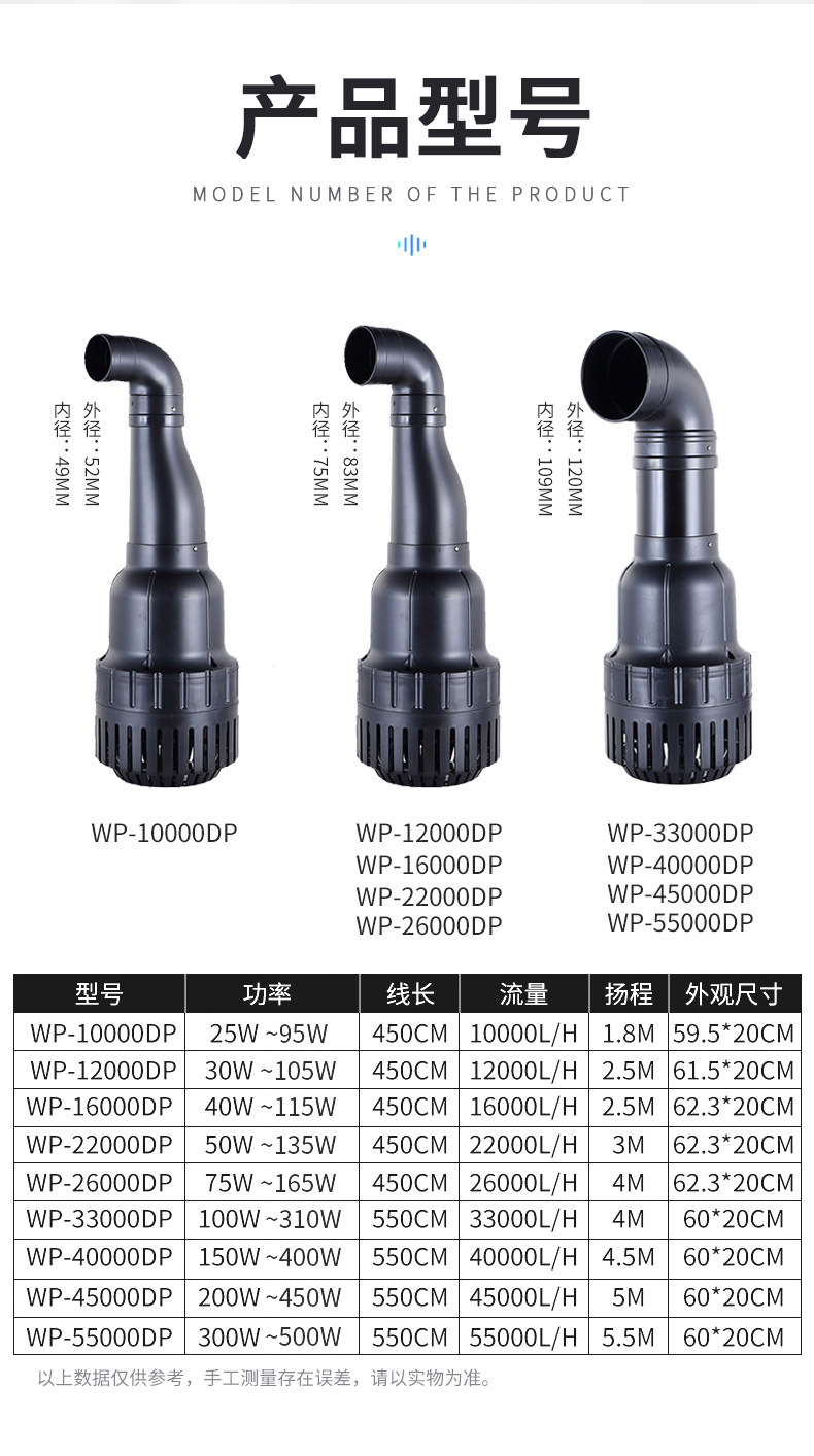 • WP-33000LP [100 와트] 15-22 톤의 물고기 연못에 적합