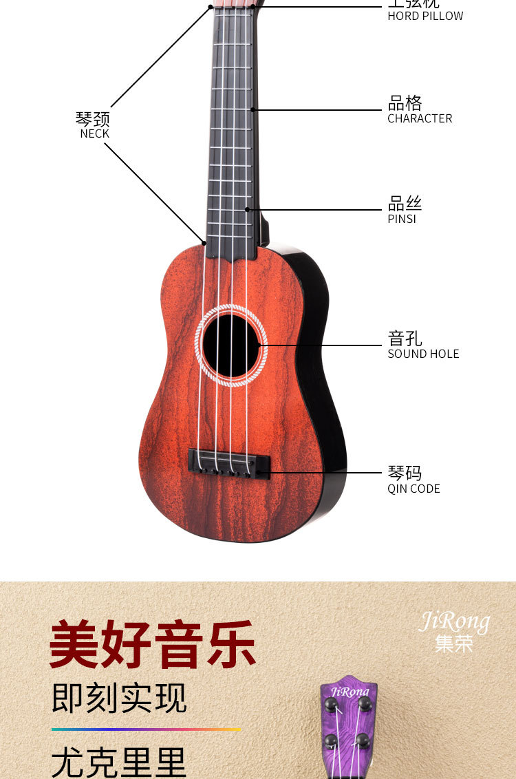 • 클래식 마호가니 컬러 우쿨렐레 장난감(액세서리 포함) 색상 상자 스타일