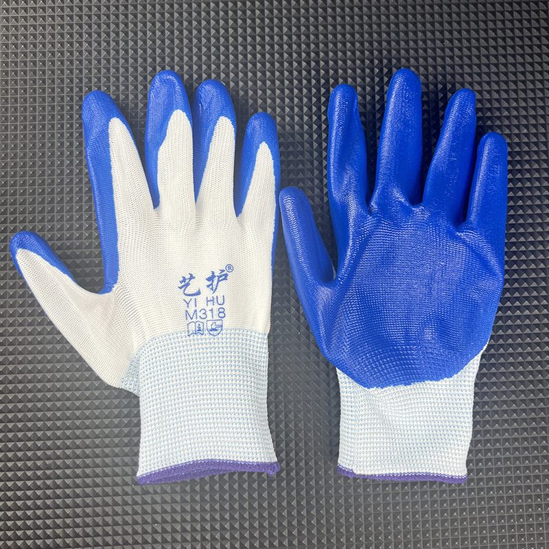 공장, 노동 보호 장갑 내마모성 518 딩 청나라 청나라 백색 니트릴 내성산 알칼리 딩 칭 접착제 장갑 공장 도매