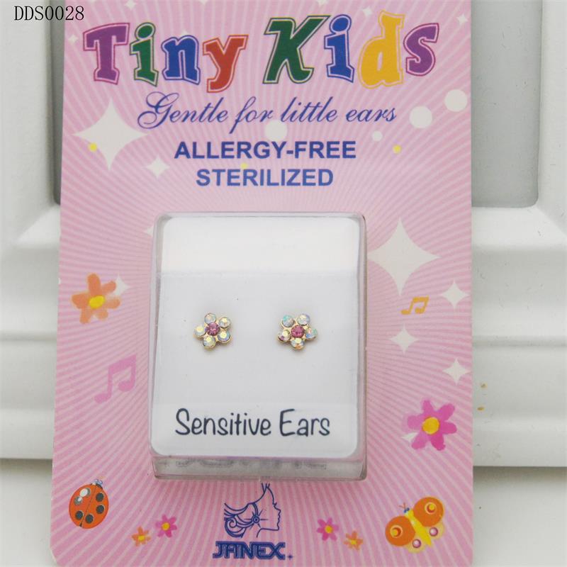 공장 도매 맞춤형 국경 스테인레스 스틸 어린이 귀걸이 핑크 멸균 박스형 한국 패션 귀걸이 세트
