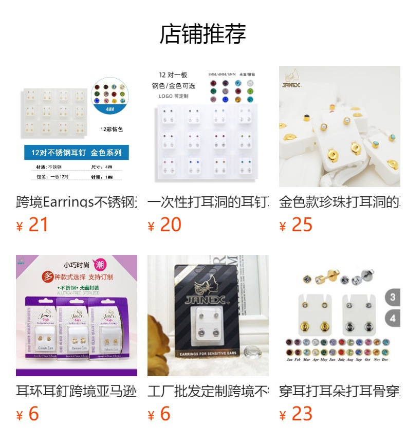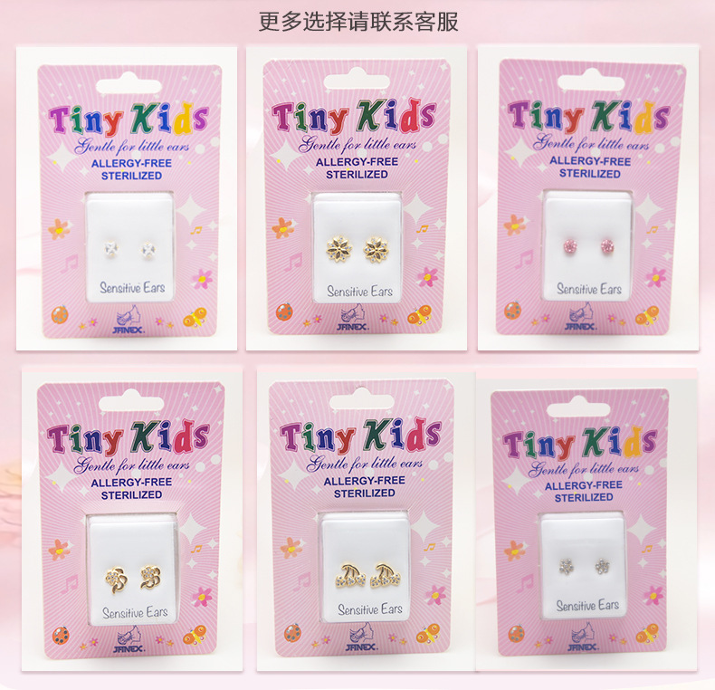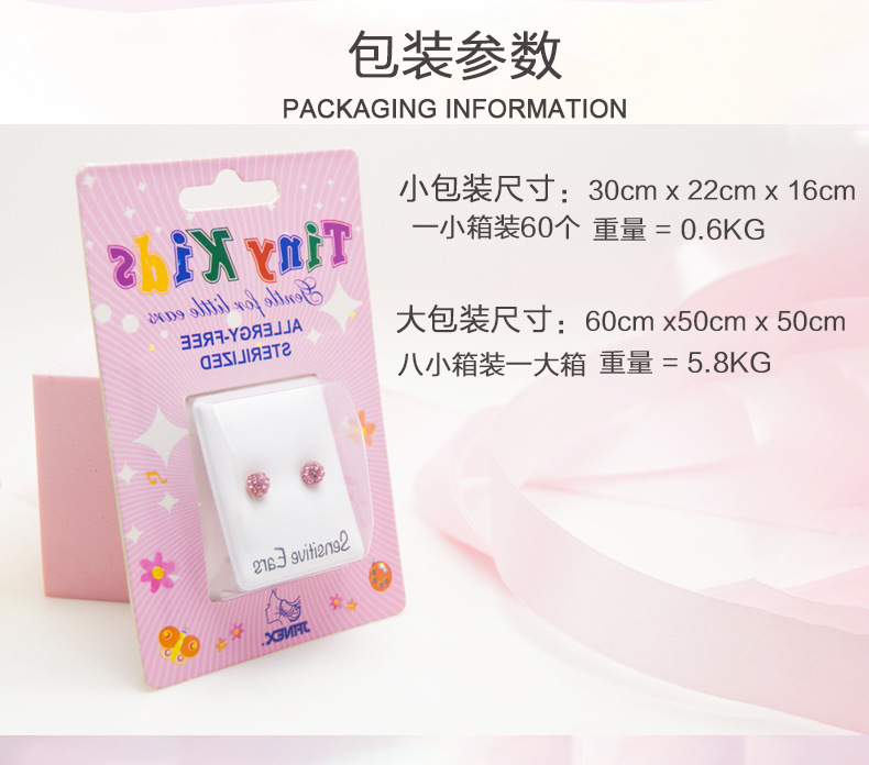 공장 도매 맞춤형 국경 스테인레스 스틸 어린이 귀걸이 핑크 멸균 박스형 한국 패션 귀걸이 세트스토어 가기