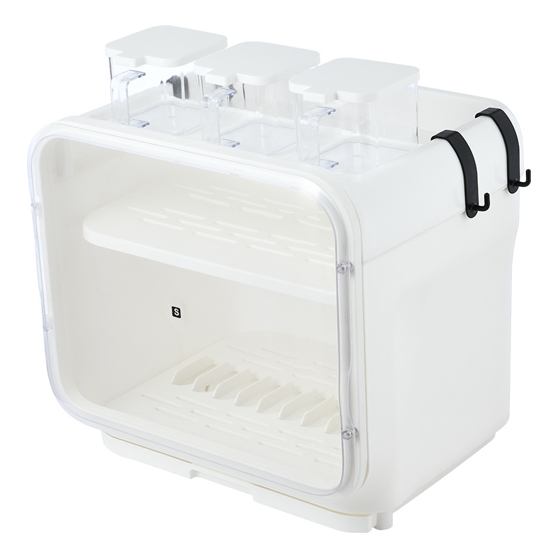 식기 그릇 상자 접시 배수 랙 플라스틱 찬장 가정용 뚜껑이있는 주방 그릇 랙 그릇 젓가락 보관 상자