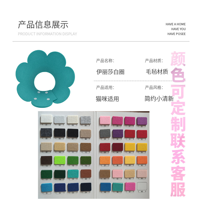 고양이 엘리자베스 목걸이 펠트 헤드기어 고양이 용품 목걸이 애완동물 핥음 방지 디자인
