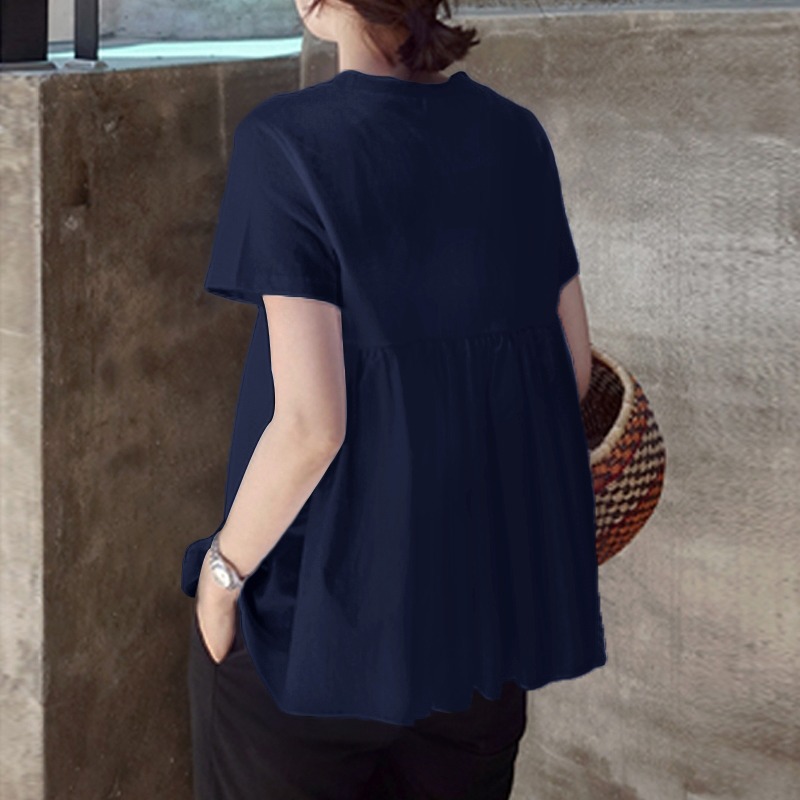 In 슈퍼 인기 티셔츠 여성용 반팔 한국식 여름 루즈한 화이트 캐주얼 여성용 모든 매치 퍼프 탑 인형 셔츠스토어 가기