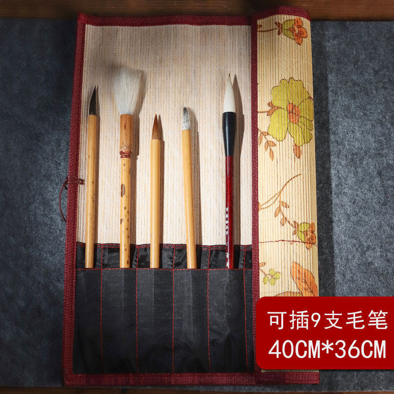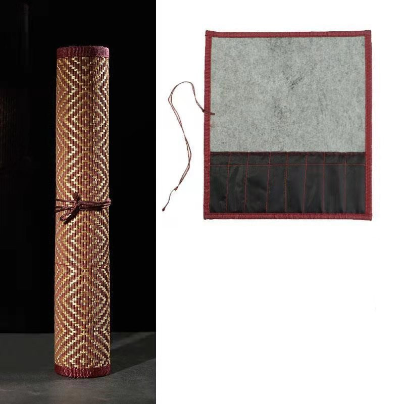 펜 커튼 롤 펜 가방 빈티지 중국 스타일 롤 펜 커튼 대나무 대용량 펜 가방 브러시 커튼 보관 가방