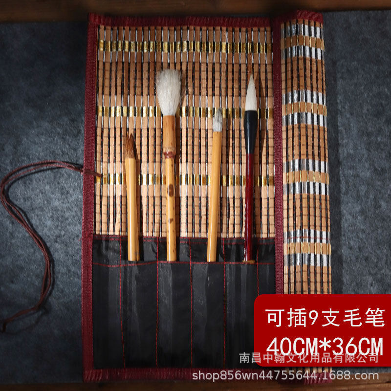 펜 커튼 롤 펜 가방 빈티지 중국 스타일 롤 펜 커튼 대나무 대용량 펜 가방 브러시 커튼 보관 가방스토어 가기