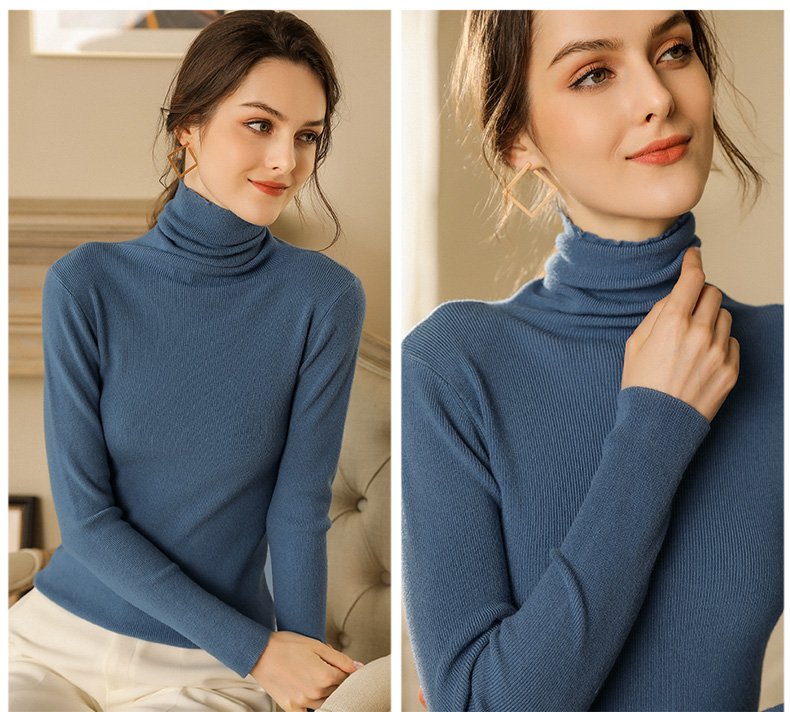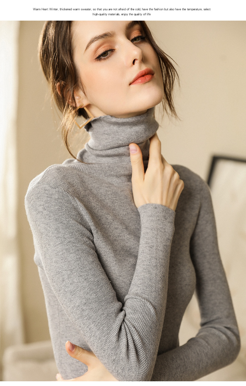 가을과 겨울 새로운 터틀넥 스웨터 여성용 타이트 긴팔 짧은 니트 파일 칼라 슬림핏 이너베이스 셔츠 코트스토어 가기