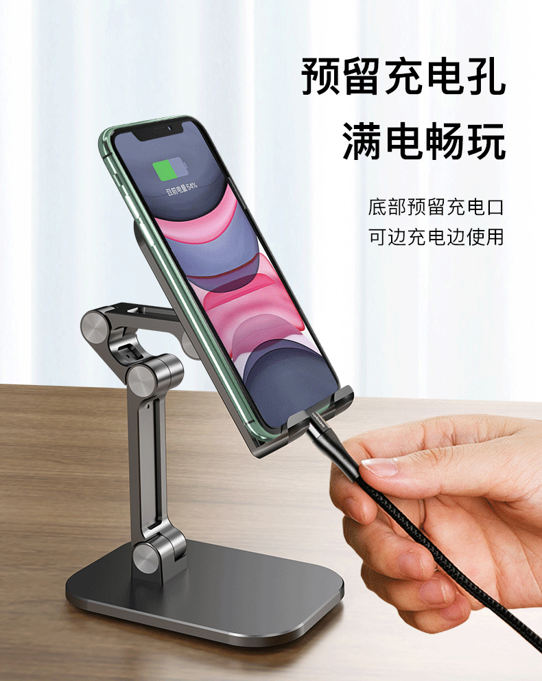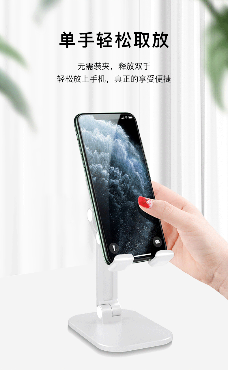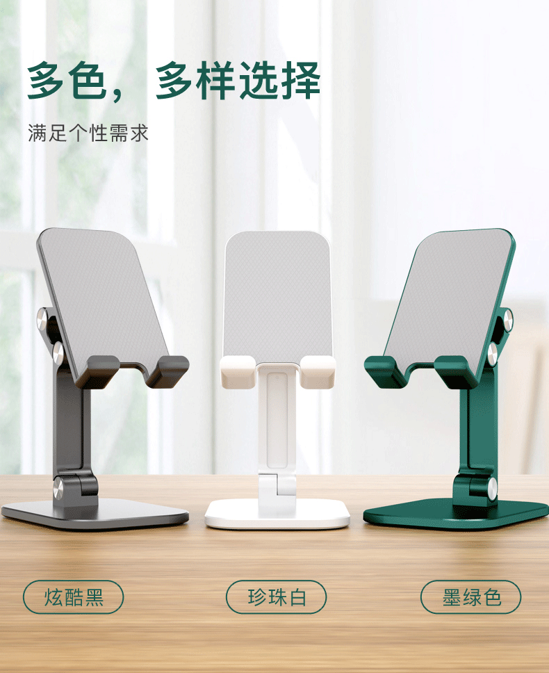桌面支架:源头厂货,专利护航。自主研发设计。黑色、白色、绿色、红色、粉色、莫兰迪绿色、燕麦色等七色常年现货供应。适用于所有手机型号。不影响充电。超稳不晃动。支持OEM/ODM定制。