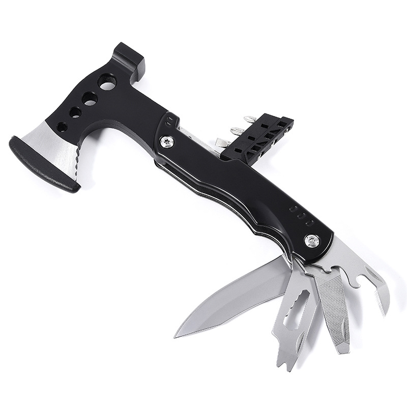 재고 새로운 다기능 도끼 망치 휴대용 접이식 소방 도끼 다목적 해머 야외 캠핑 칼 펜치 전술 도끼