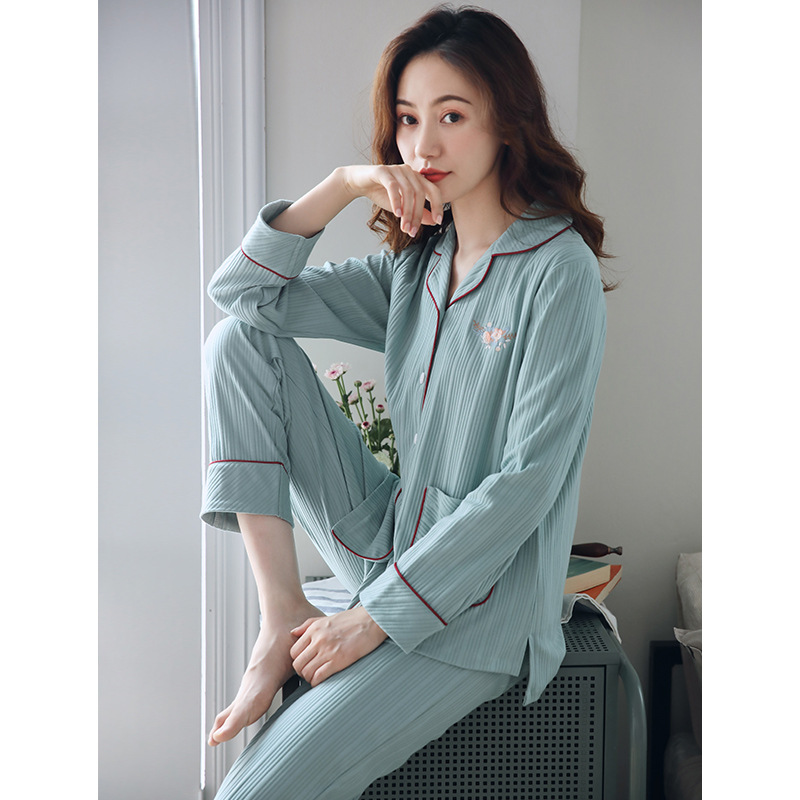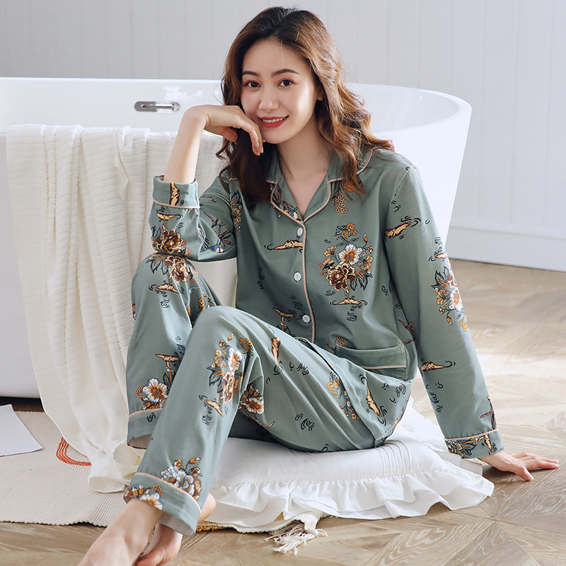 새로운 스타일 잠옷 여자의 봄과 가을 면 긴팔 가을과 겨울 가정 옷 면 얇은 가디건 플러스 사이즈 느슨한 세트스토어 가기