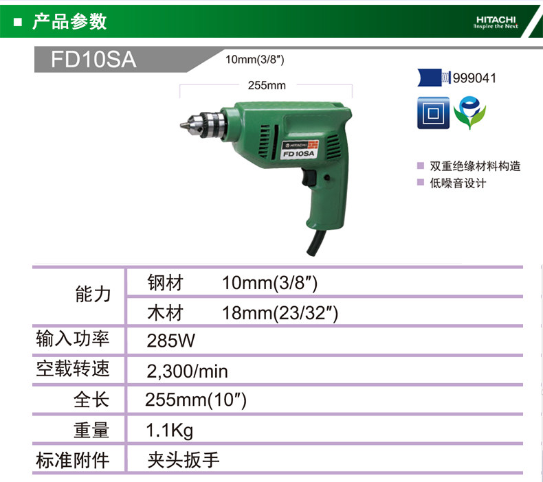 日立手电钻FD10SA 220V家用手电钻手枪钻电动螺丝刀电动起子机