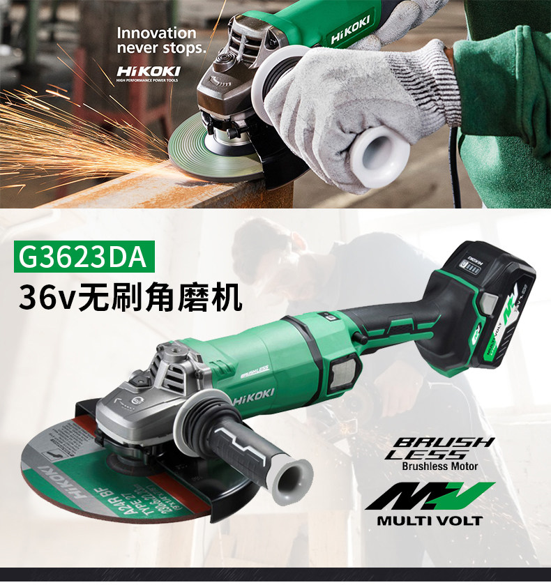 히타치 히타치 앵글 그라인더 G3623DA 브러시리스 충전식 36V 그라인더 230 연마 및 절단기스토어 가기