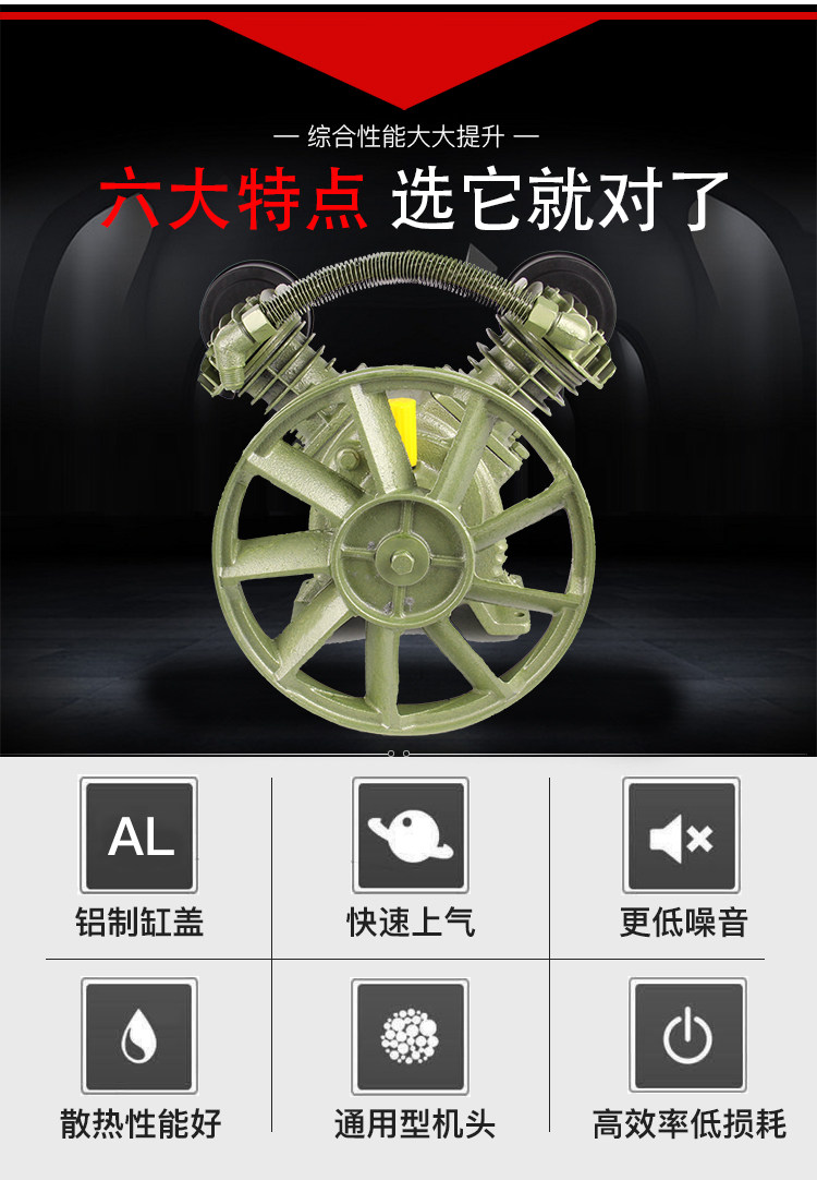 피스톤형 Jiebao 더블 실린더 3 기통 공기 압축기 공기 펌프 헤드 공기 압축기 헤드 공기 펌프 벨트 펌프스토어 가기