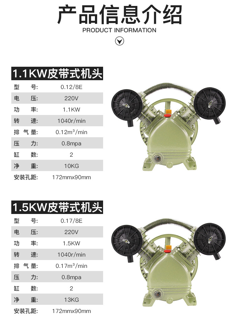• 1.05/12.5 압력 (7.5KW 포함) 두 실린더