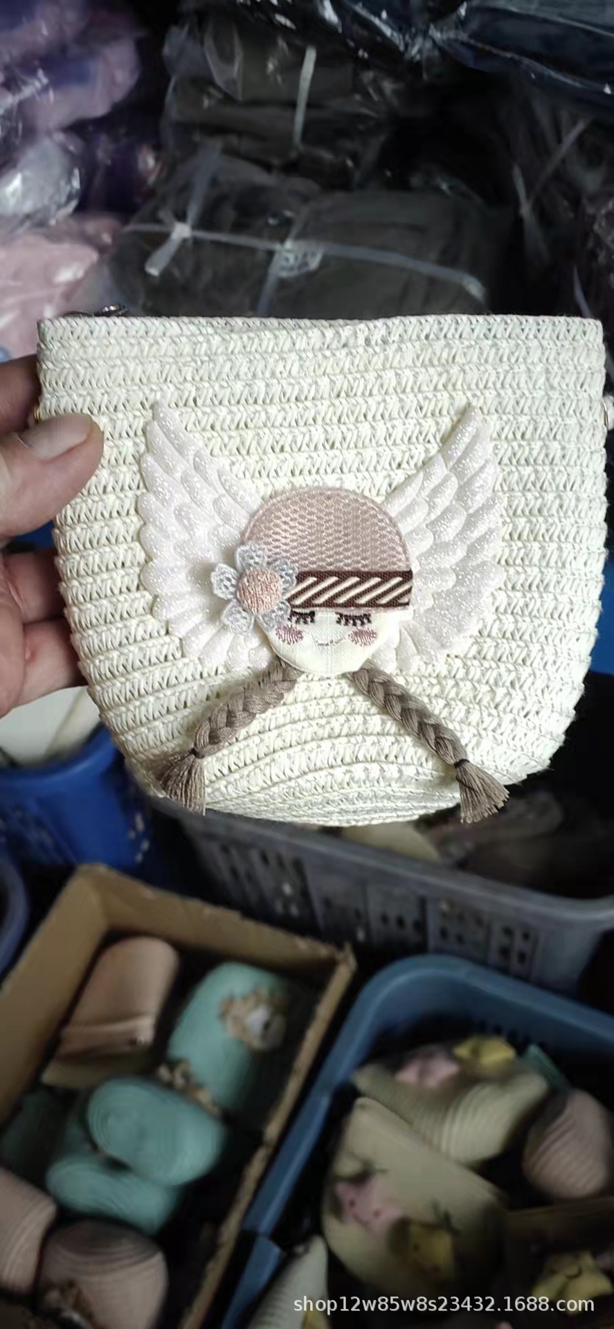 여성을위한 가방 2025 새로운 어린이 만화 가방 미니 귀여운 Crossbody 가방 동전 밀짚 꽃 비치 가방 도매스토어 가기