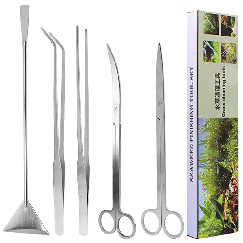 스테인레스 스틸 물 잔디 트리밍 도구 수족관 평면 모래 삽 족집게 물고기 탱크 청소 물 잔디 가위 세트