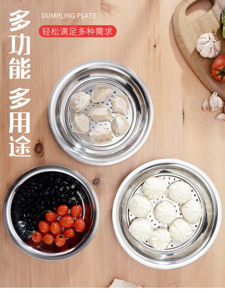 두꺼운 스테인레스 스틸 만두 접시 건조 이중층 만두 접시 과일 접시 가정용 레스토랑 디스크 트레이 접시스토어 가기