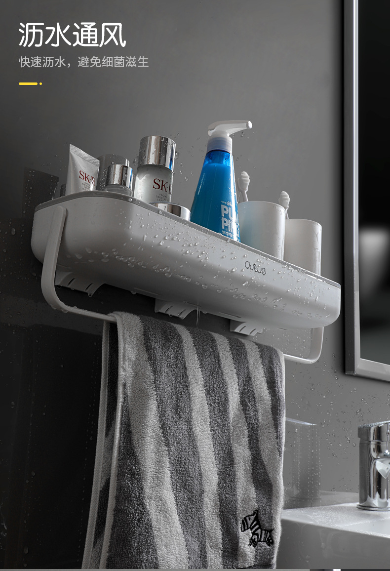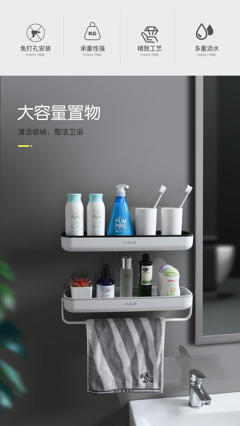 浴室收纳挂架壁挂厕所洗手间免打孔洗漱台毛巾壁挂免打孔置物架