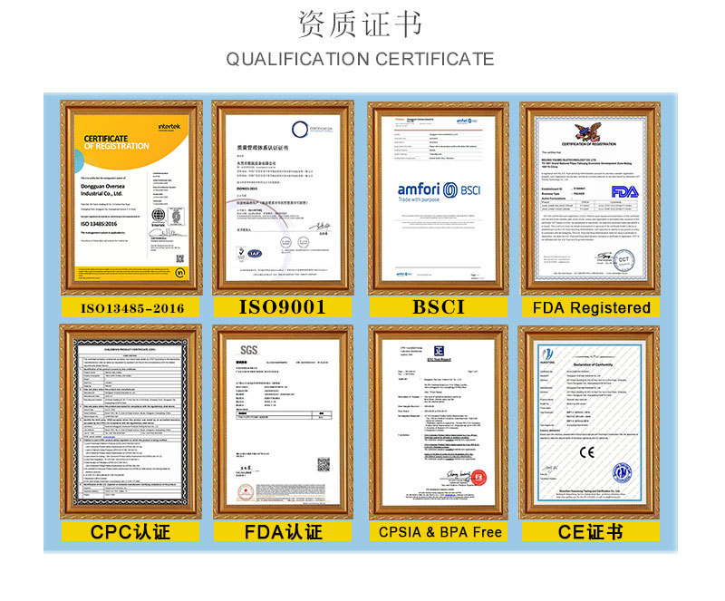 欧航公司已通过 ISO 13485认证,BSCI验厂,美国FDA二类医疗注册。