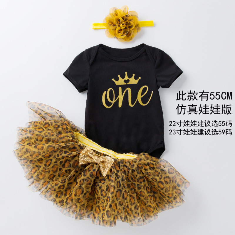 크로스 보더 인 독립 역 아기 소녀 귀여운 만화 옷 레오파드 무늬 스커트 3 피스 아기 반팔 세트스토어 가기