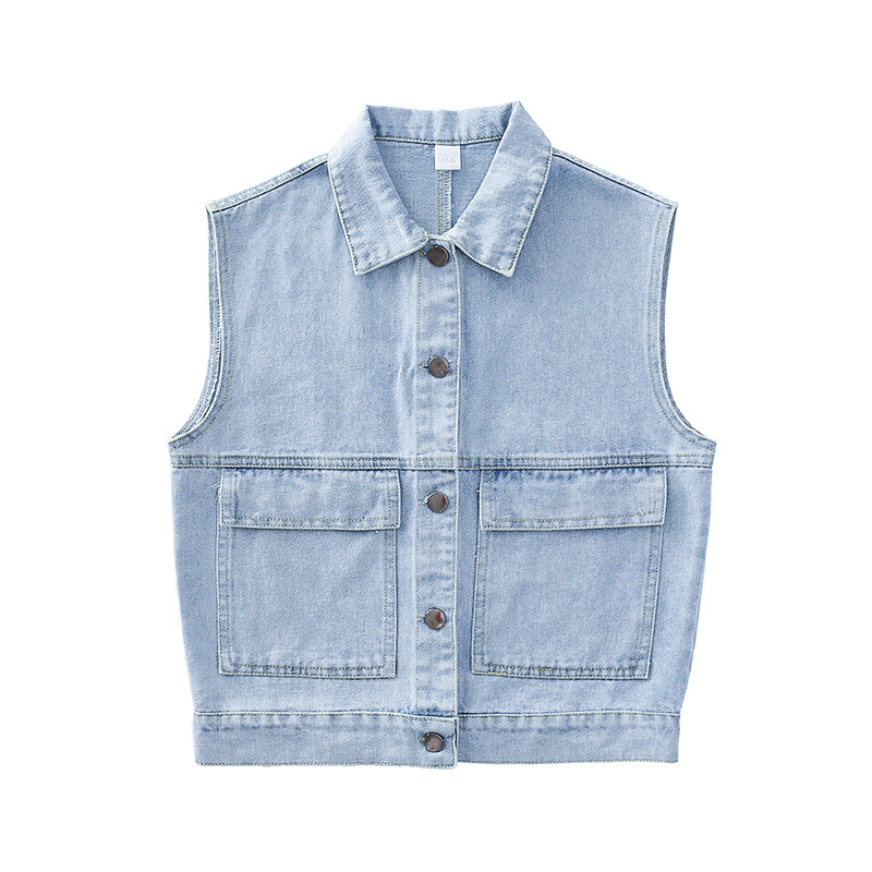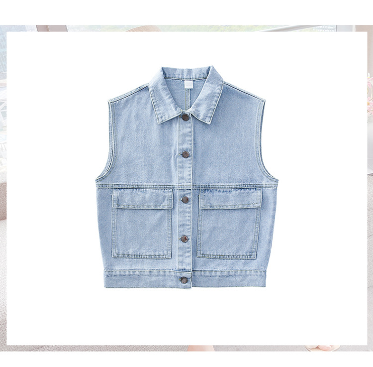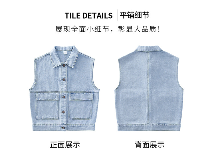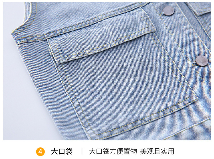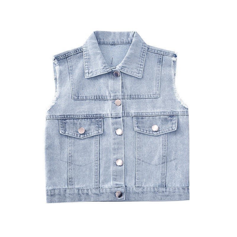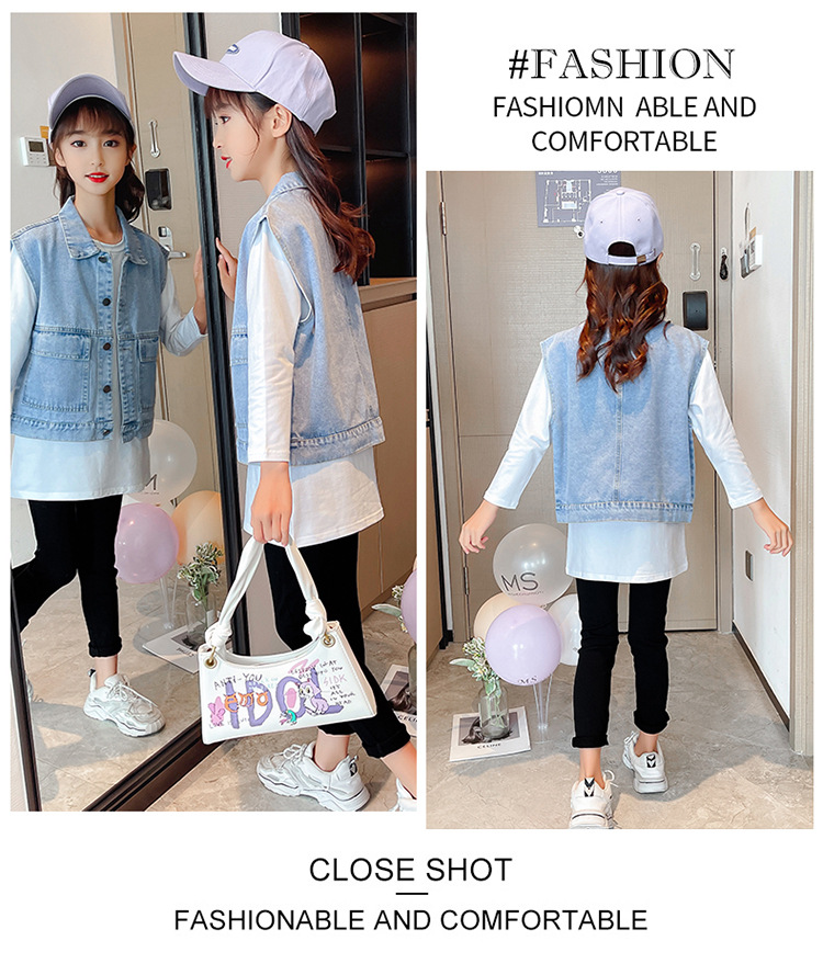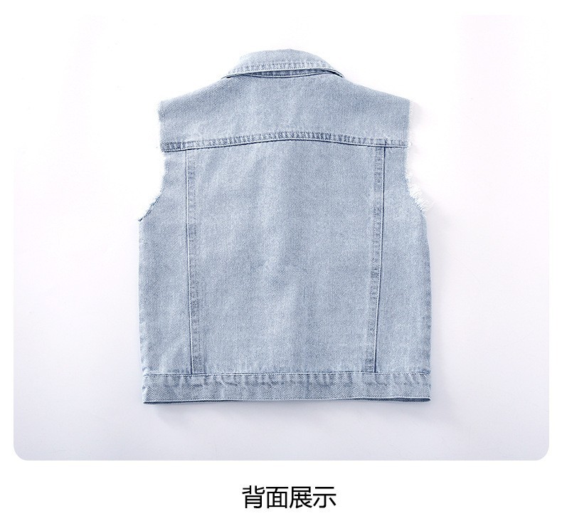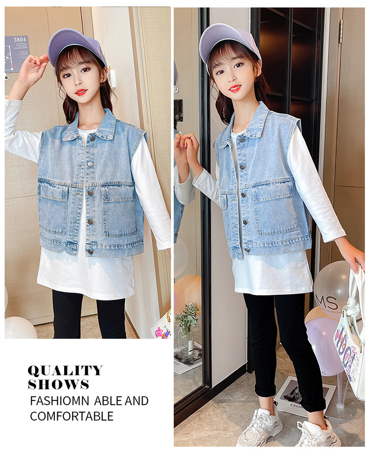 어린이 데님 조끼 톱 2024 봄 새 소녀 한국어 버전의 봄과 가을 양복 조끼 단색 데님 재킷스토어 가기