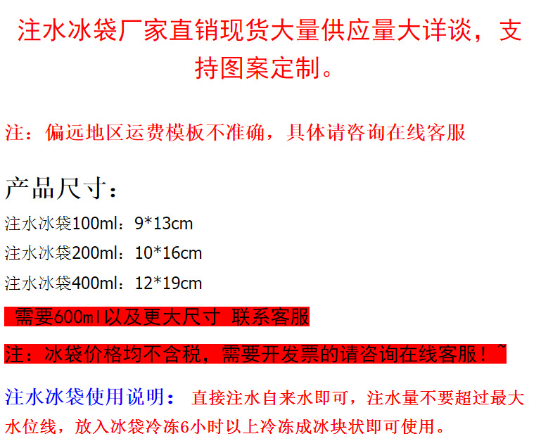 즉시 사용 가능한 물주머니, 신선도 유지, 냉장, 냉각, 아이스팩, 일회용 식품, 해산물, 케이크 보냉백, 맞춤 제작