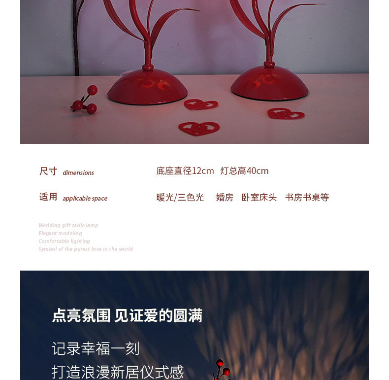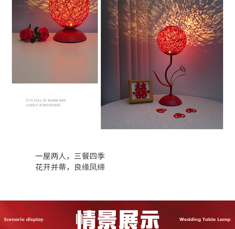 웨딩 웨딩 웨딩 분위기 나이트 라이트 선물 웨딩 침실 침대 옆 레드 롱 램프 웨딩 장식 테이블 램프 침실스토어 가기