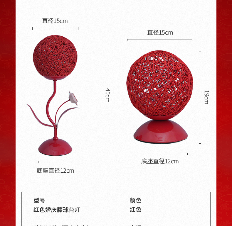 웨딩 웨딩 웨딩 분위기 나이트 라이트 선물 웨딩 침실 침대 옆 레드 롱 램프 웨딩 장식 테이블 램프 침실