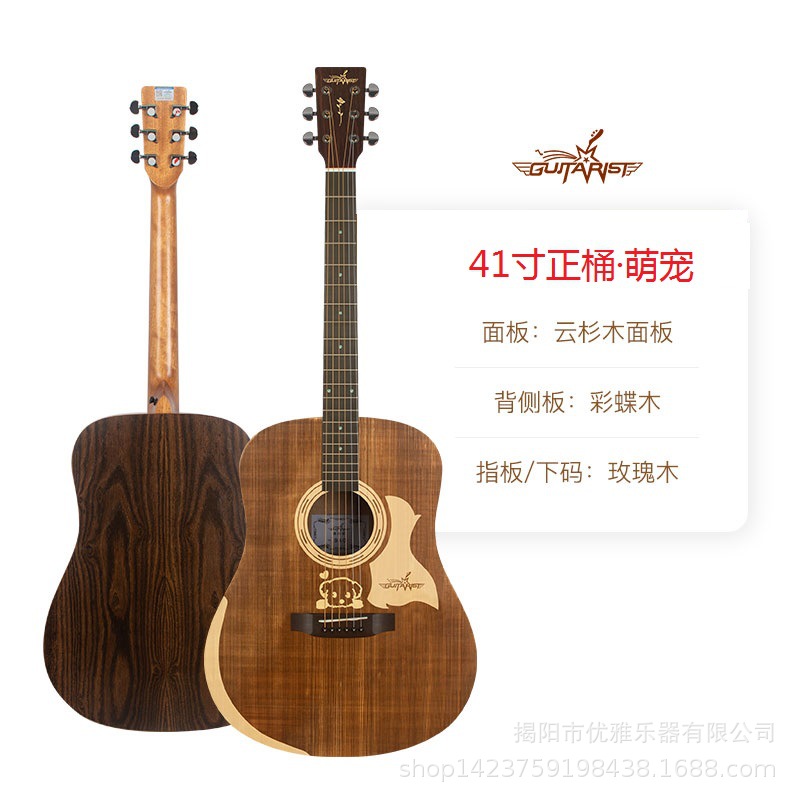 싱글 보드 어쿠스틱 기타 41 인치 스프루스 기타 우드 컬러 둥근 지타 남성 및 여성용 악기 누락 각도 얼굴 싱글 기타