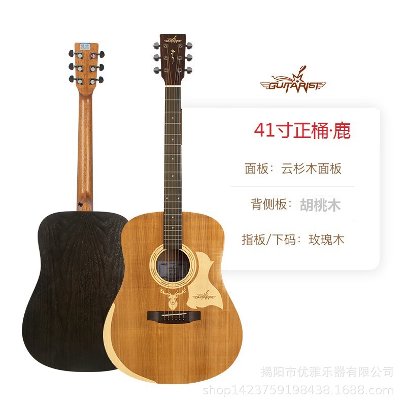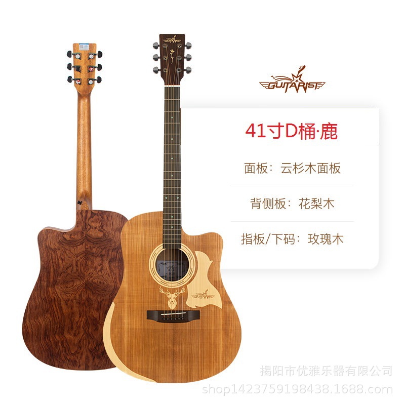 싱글 보드 어쿠스틱 기타 41 인치 스프루스 기타 우드 컬러 둥근 지타 남성 및 여성용 악기 누락 각도 얼굴 싱글 기타스토어 가기