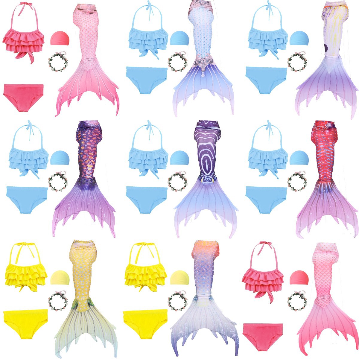 어린이 수영복 새로운 쓰리피스 소녀 인어 수영복 인어 공주 세트 인어 어린이 공연 옷