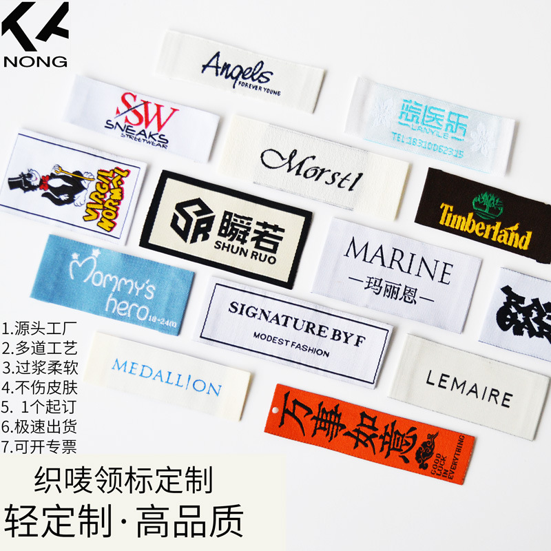 공장 아울렛 선도 라벨 의류 만들기 고밀도 천 라벨 메인 마크 측면 마크 세척 마크 직조 마크 상표 액세서리