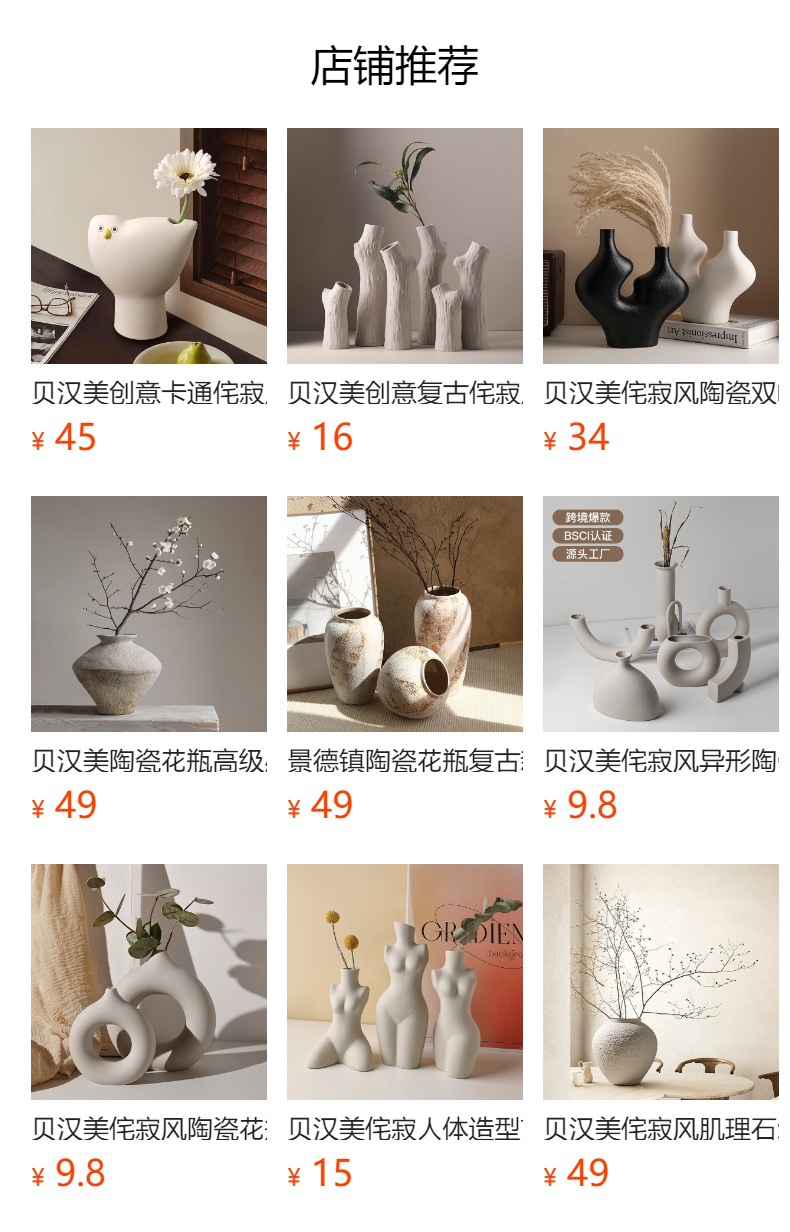 Behanmei 크리 에이 티브 Wabi-sabi 흰색 세라믹 꽃병 장식품 거실 꽃꽂이 현대 간단한 가정 장식 꽃 용기스토어 가기