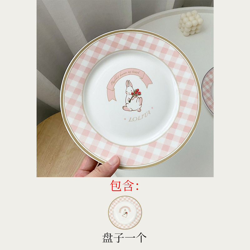 스타일 작은 토끼 빈티지 세라믹 플레이트 프랑스 스타일 귀여운 소녀의 심장 아침 식사 접시 디저트 플레이트 케이크 격자 무늬 접시
