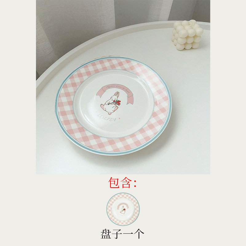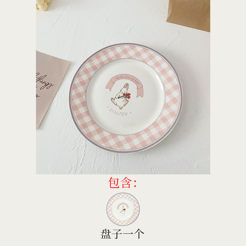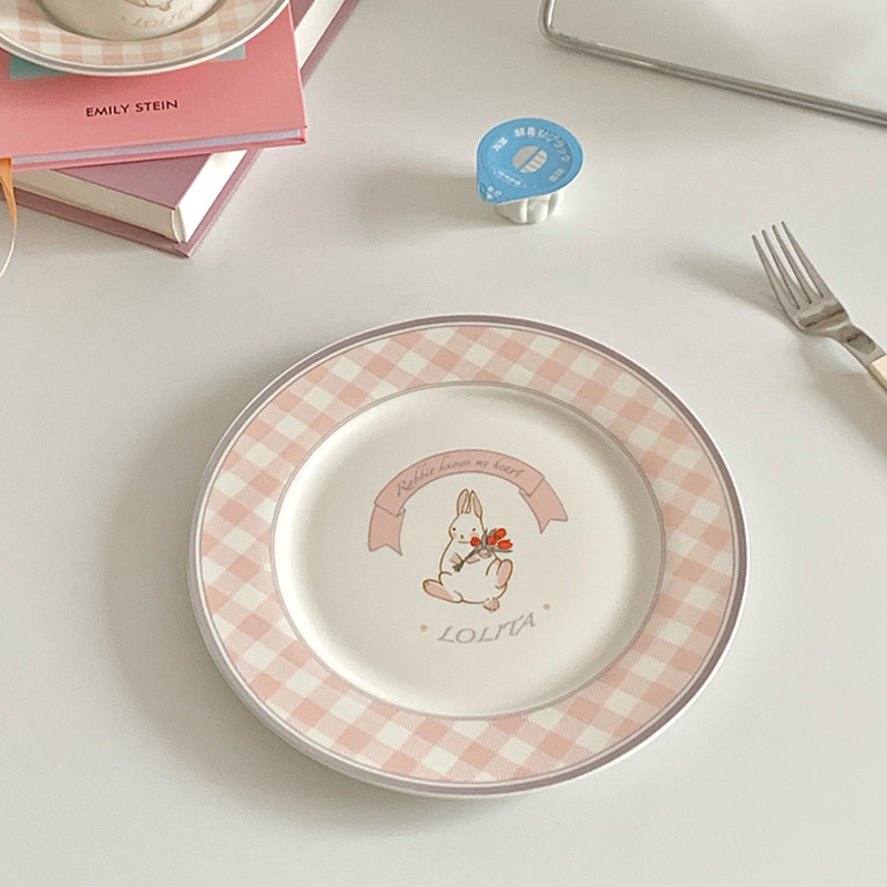 스타일 작은 토끼 빈티지 세라믹 플레이트 프랑스 스타일 귀여운 소녀의 심장 아침 식사 접시 디저트 플레이트 케이크 격자 무늬 접시스토어 가기