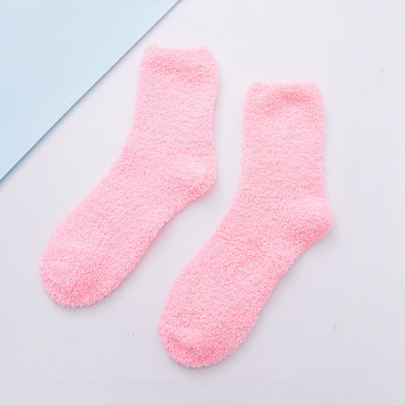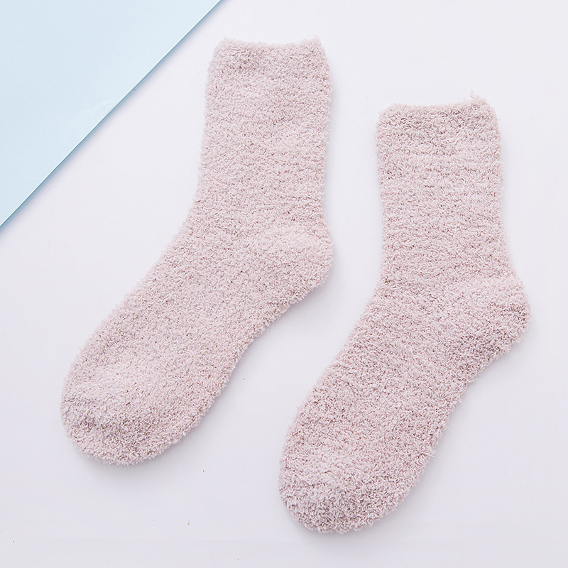 22 색 평면 여성 양말 산호 양털 홈 바닥 양말은 두꺼운 반 벨벳 가을과 겨울 봉제 양말 도매스토어 가기