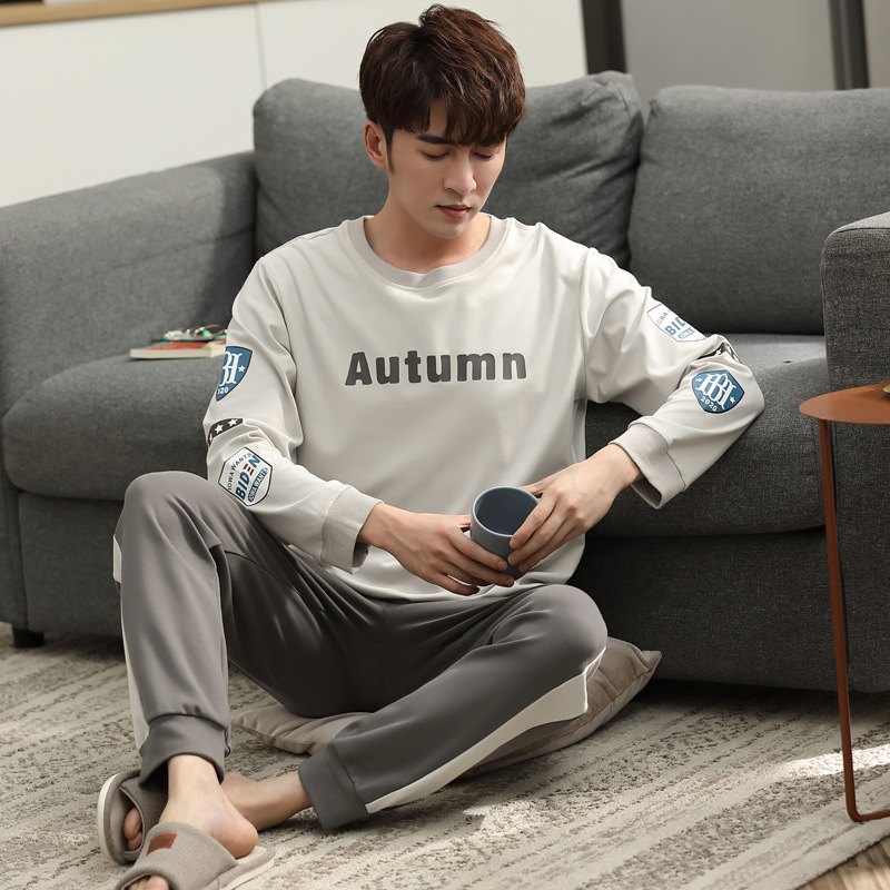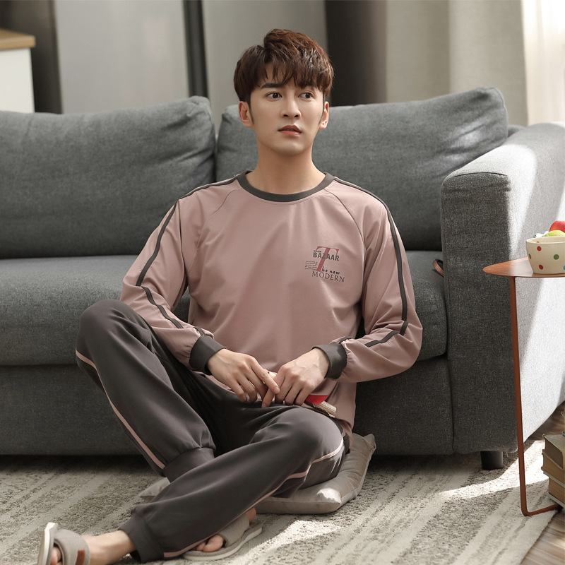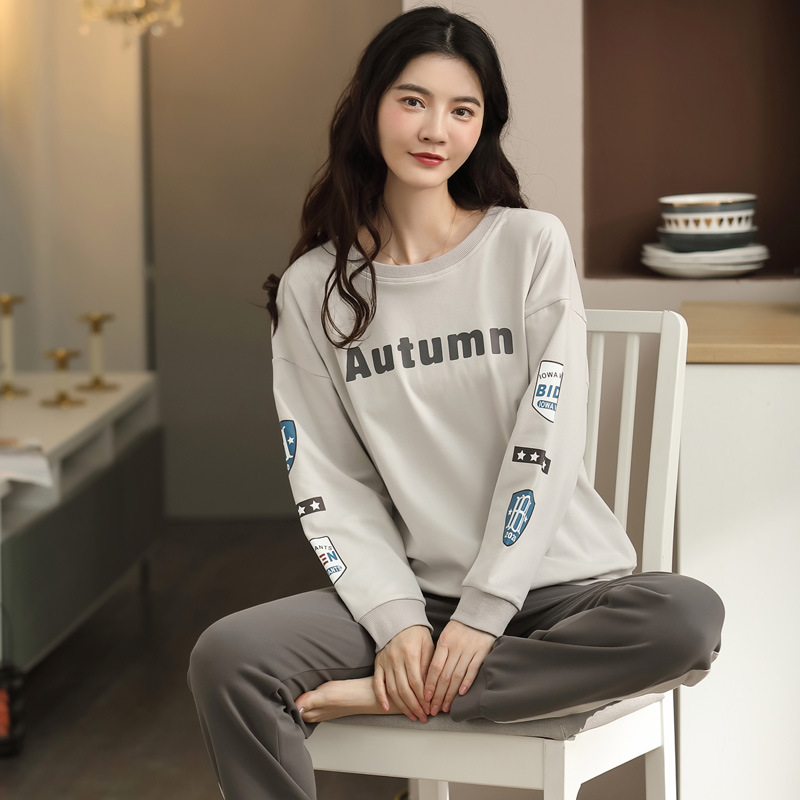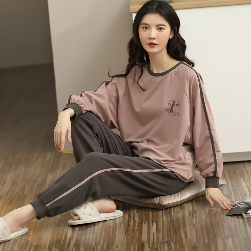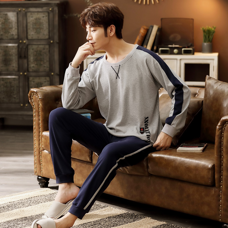 봄과 가을 순면 커플 잠옷 여자의 긴 소매 느슨한 플러스 사이즈 세트 얇은 남자의 가정 의류 겉옷스토어 가기