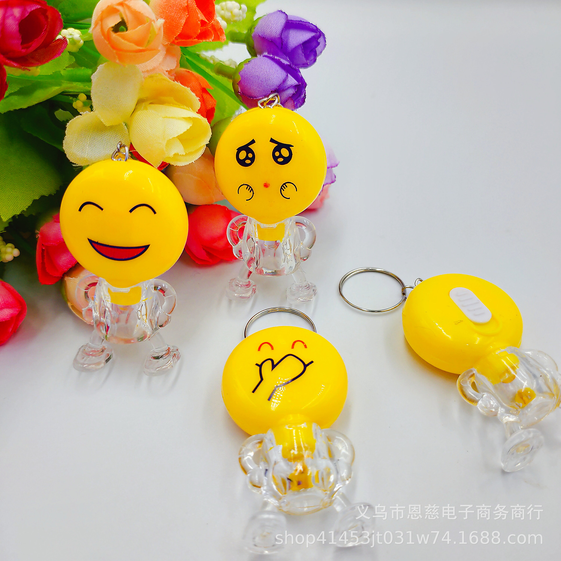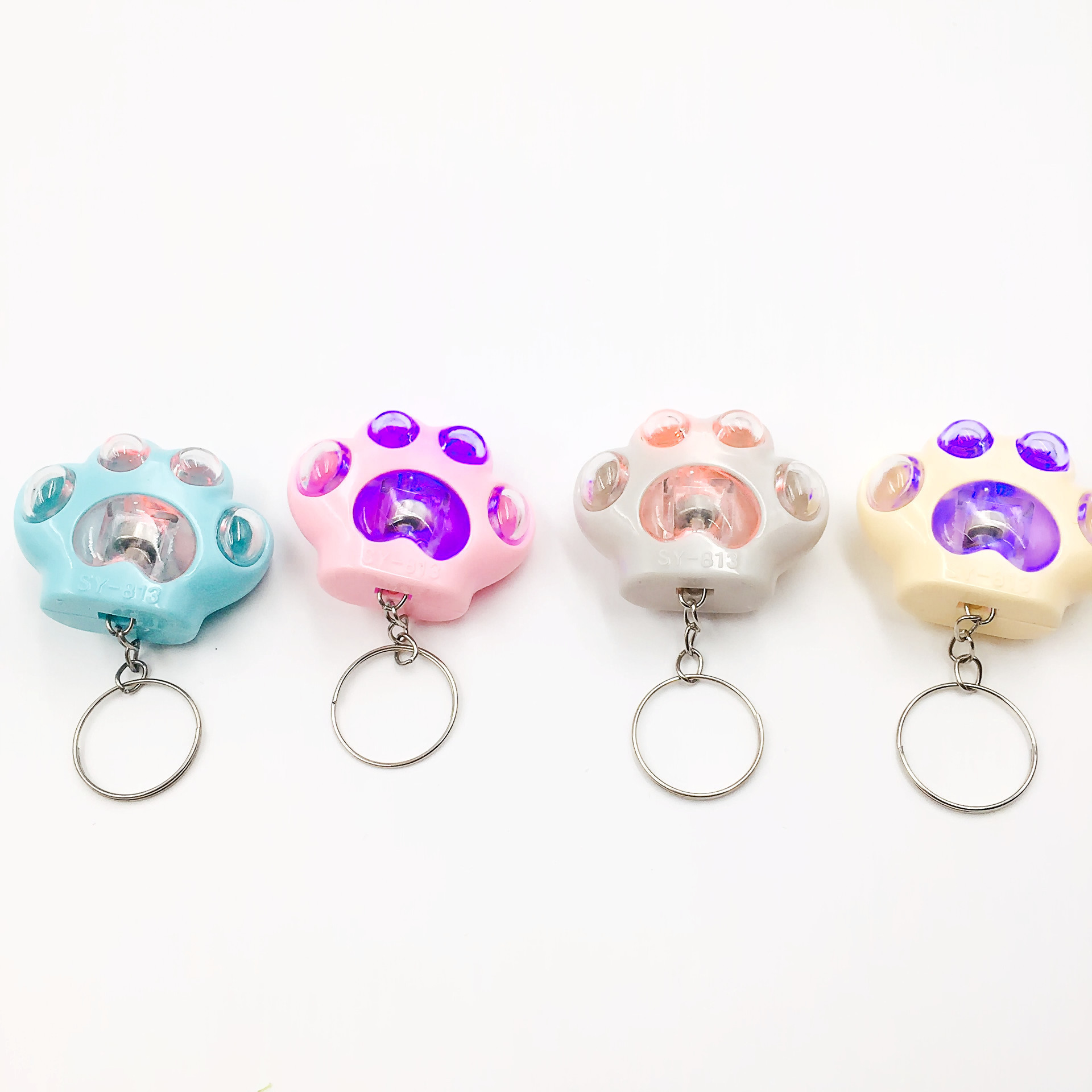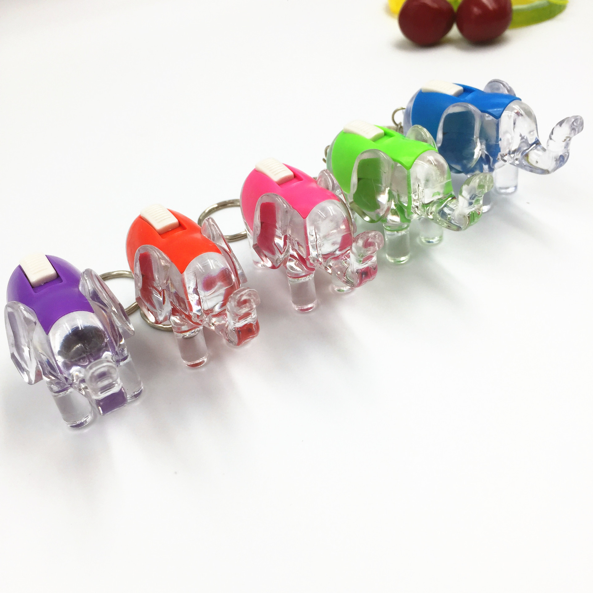 국경 간 창조적 인 LED 만화 빛나는 키 체인 Stall 배수 푸시 스윕 코드 작은 선물