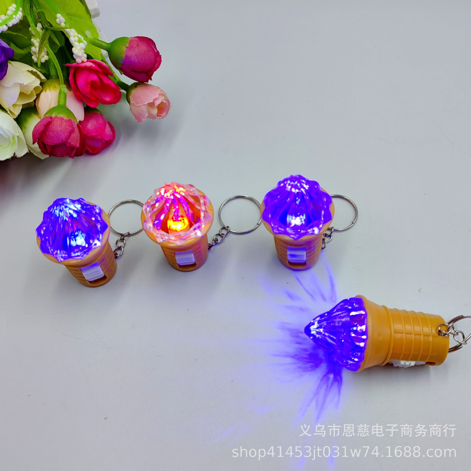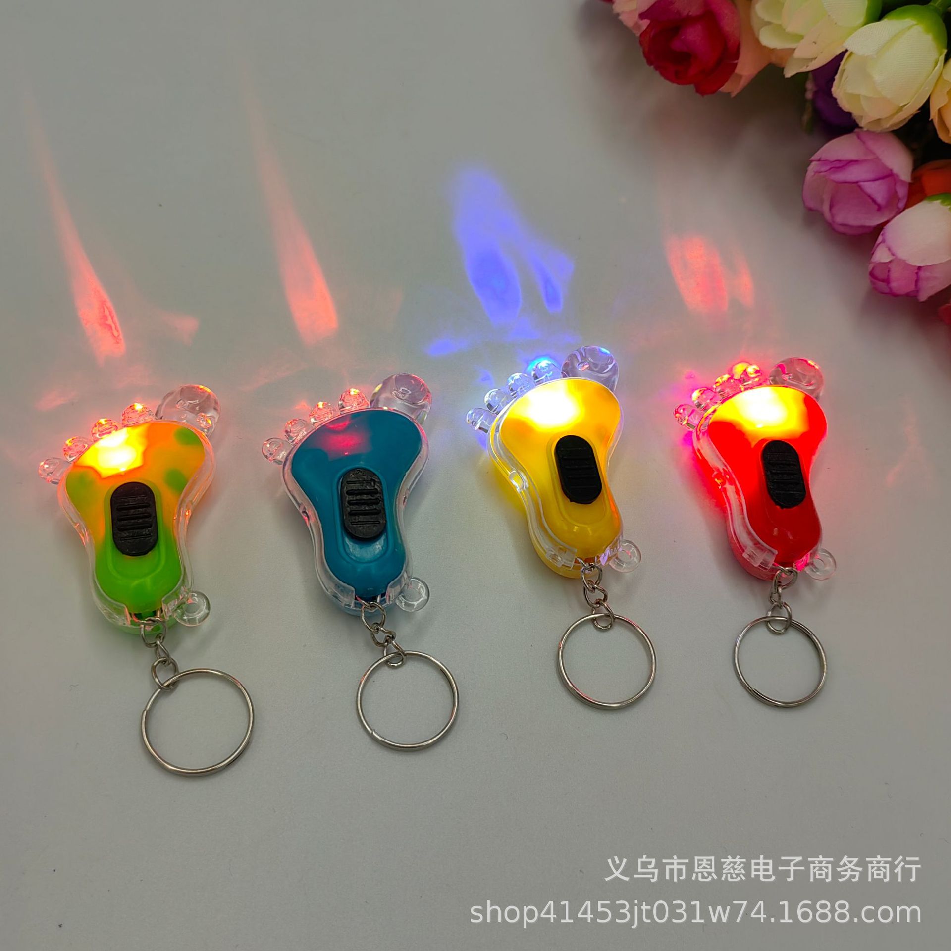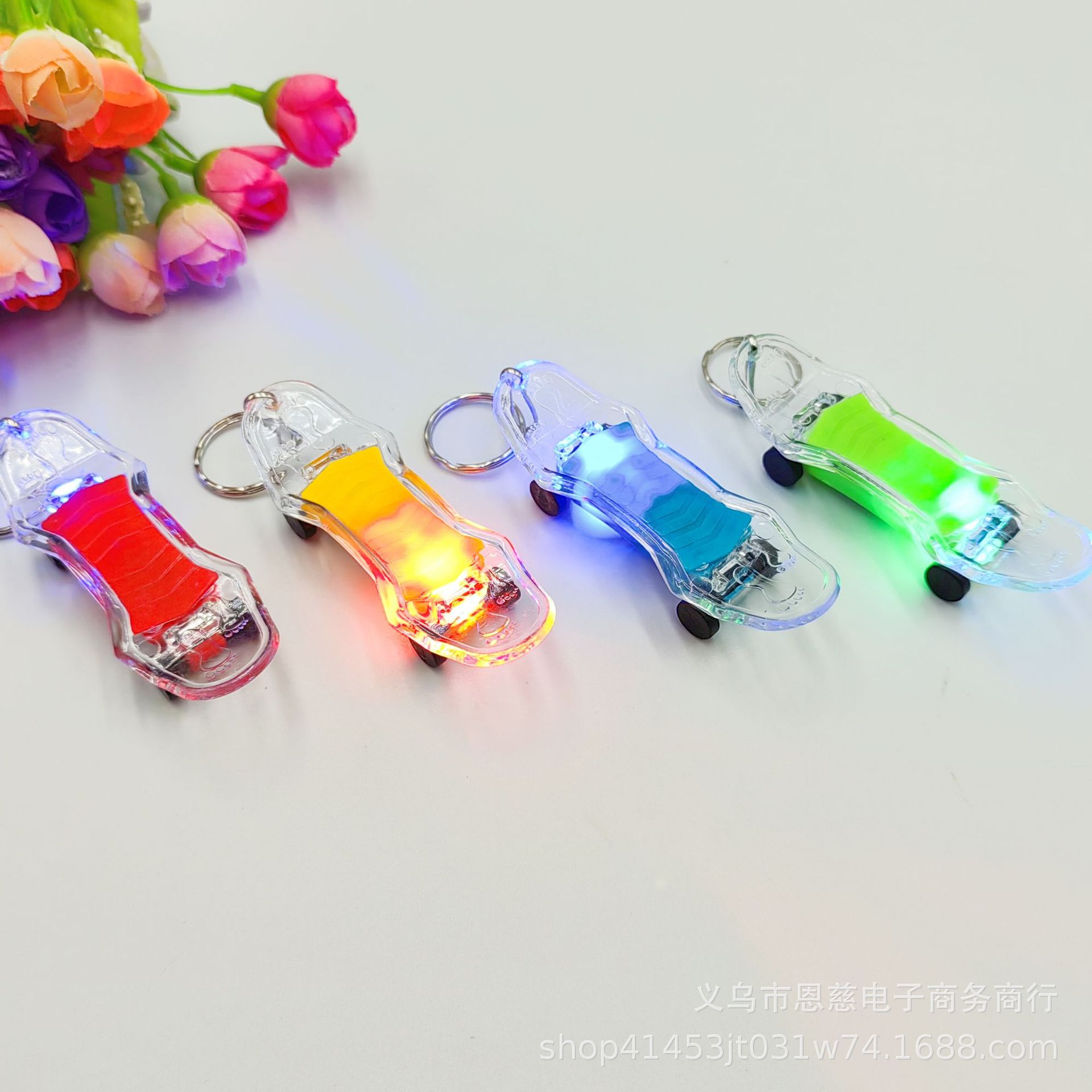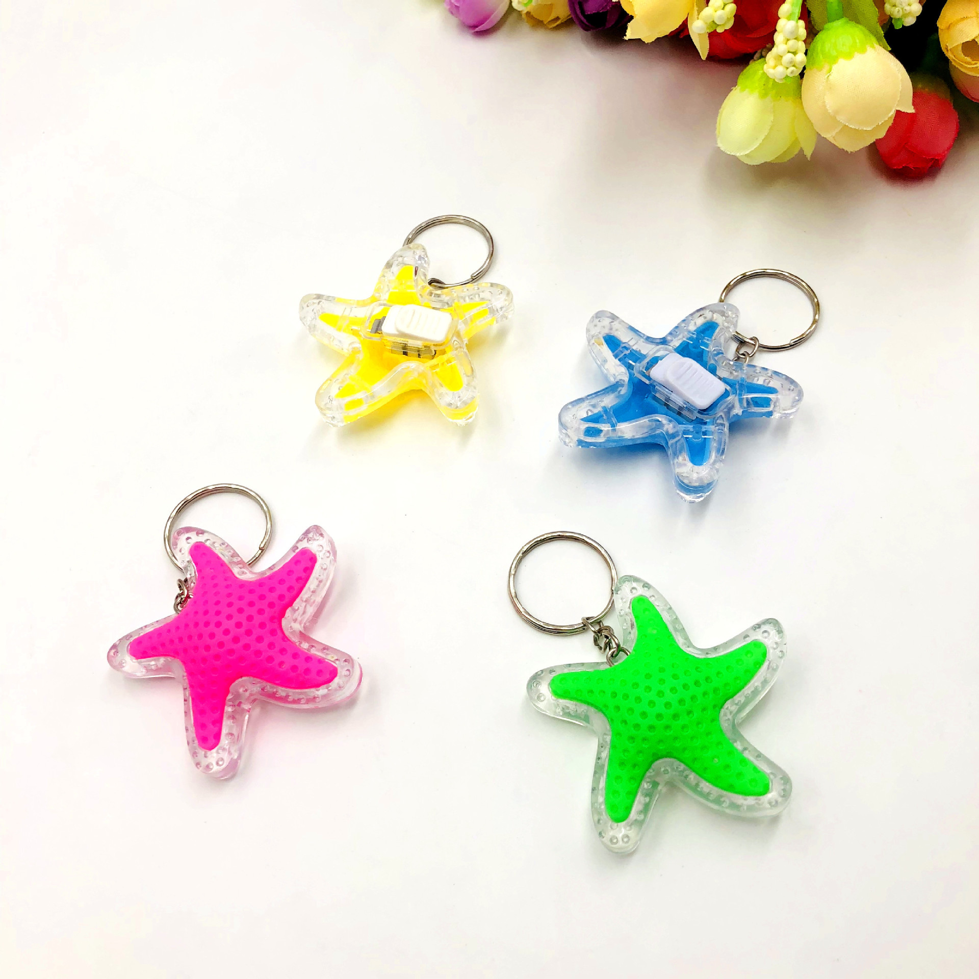 국경 간 창조적 인 LED 만화 빛나는 키 체인 Stall 배수 푸시 스윕 코드 작은 선물